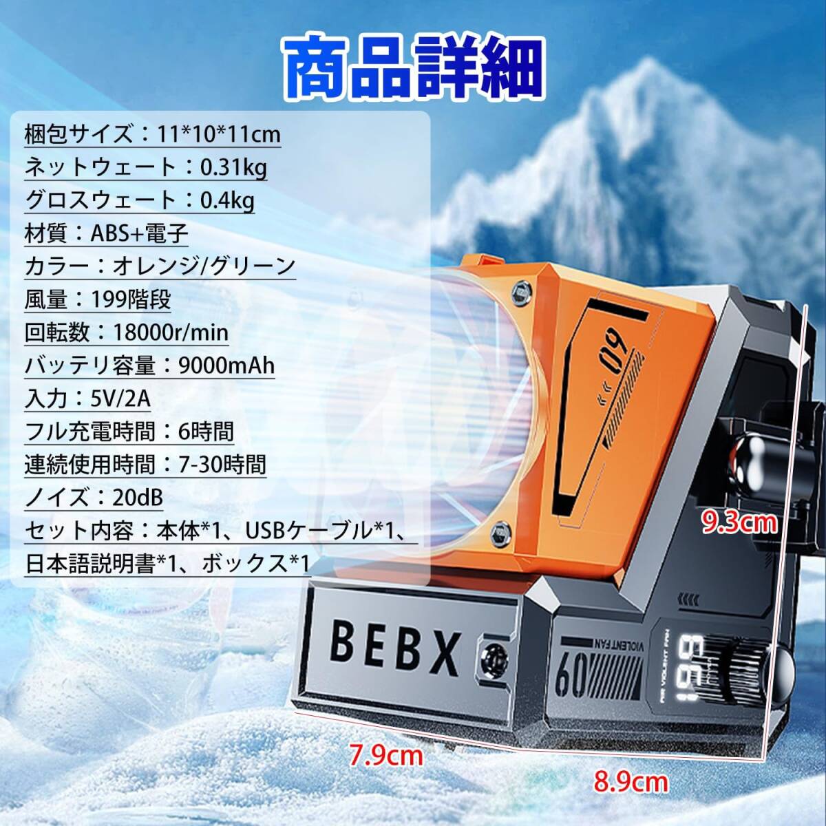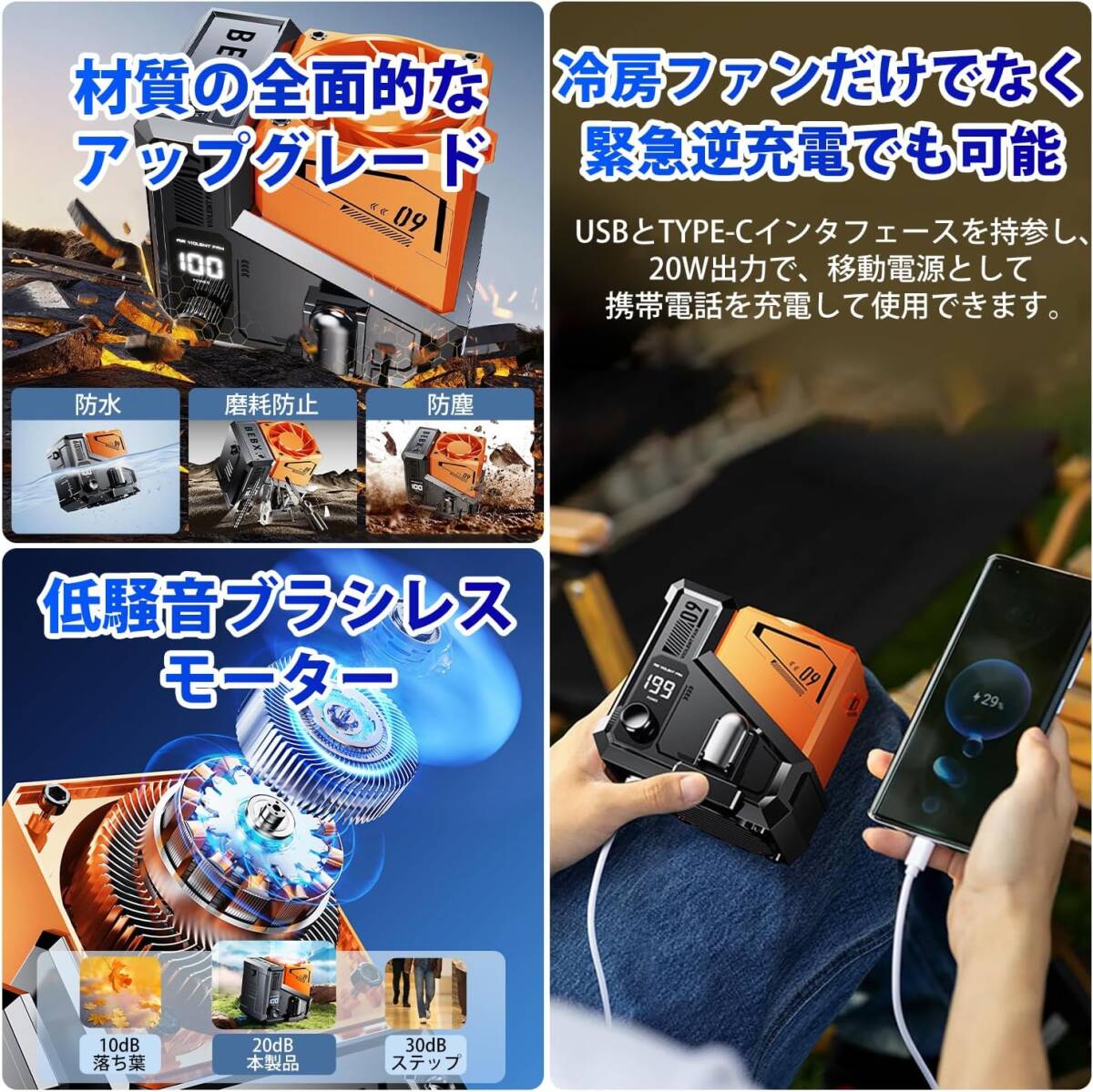 9000mAh大容量:4-5時間のフル充電で、微弱モードでの連続使用時間は約30時間、強モードだけでも7時間ぐらいと、長時間の使用にも対応してくれます。Type-C高速充電で、たった5分の充電で2時間連続送風可能です