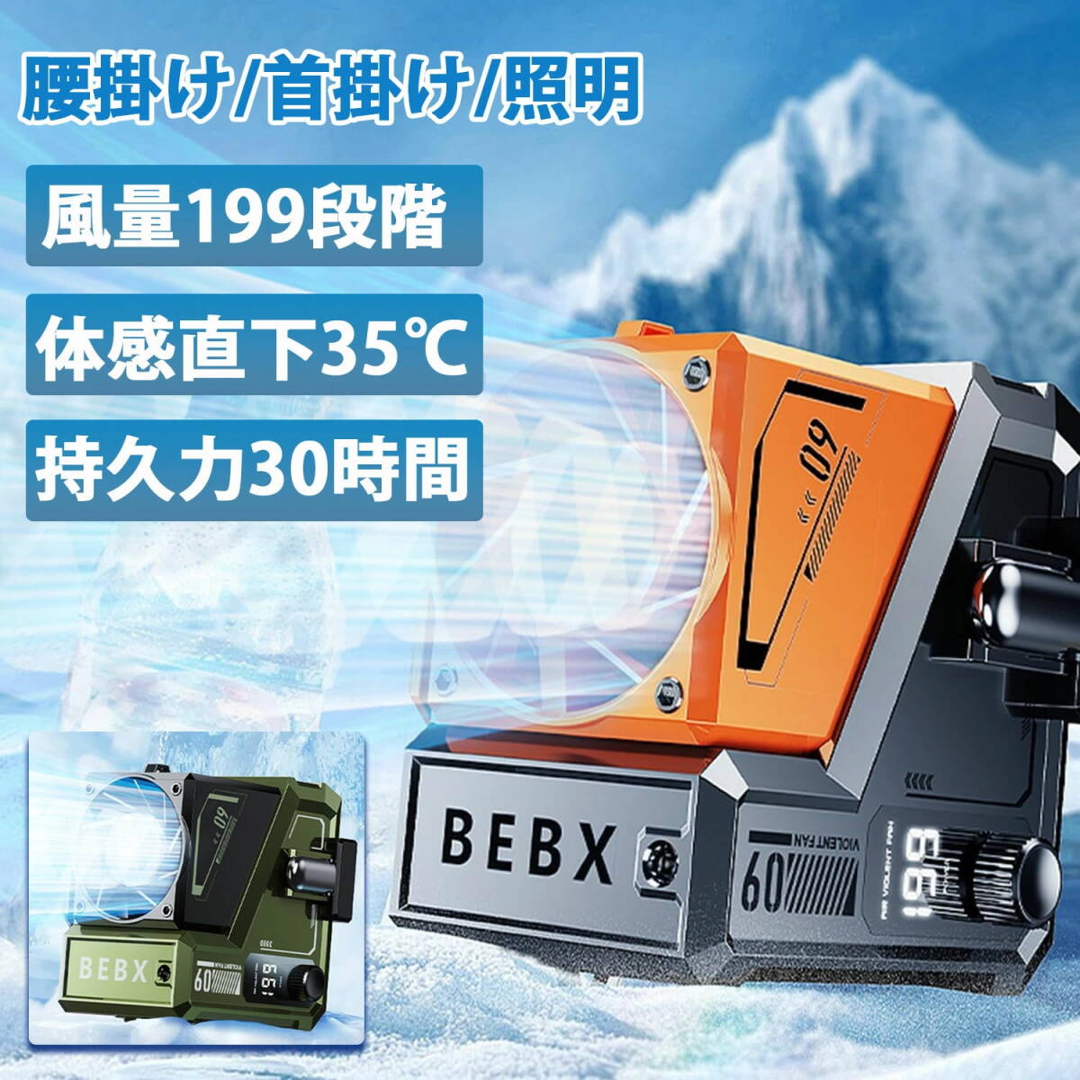 腰掛け扇風 機風量199段階 携帯扇風機 持久力30時間 腰掛け/首掛け/照明 クリップファン ベルトファン 扇風機 9000mAh 屋外作業 熱中症対策