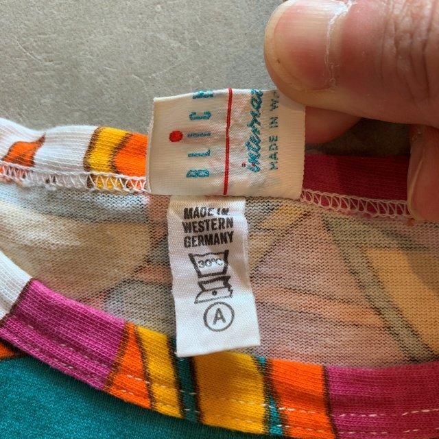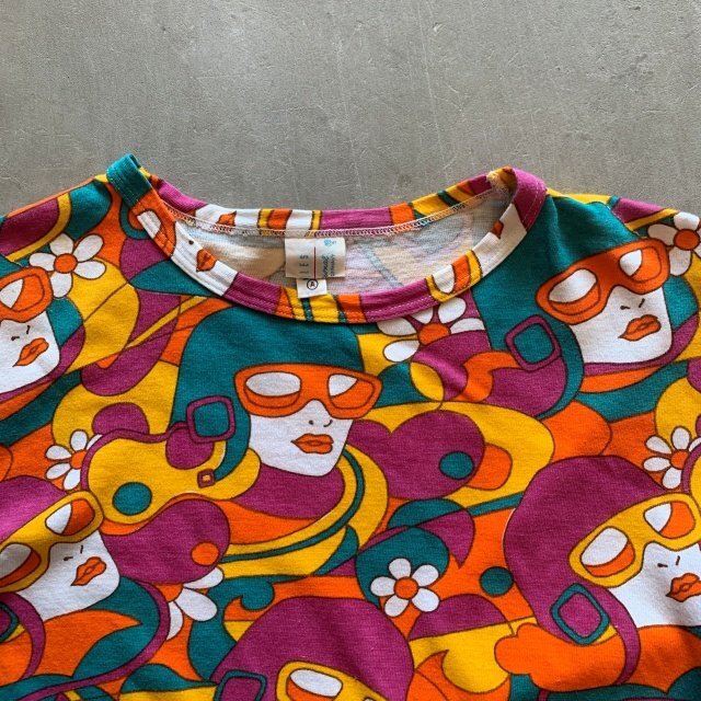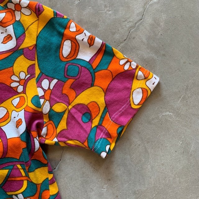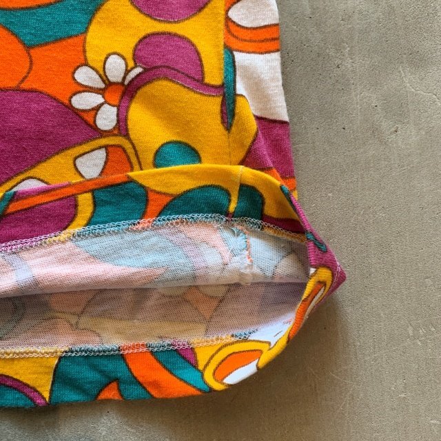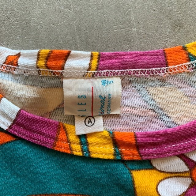 ★商品状態★ ・着用感ございますが特に目立つダメージや汚れなどは見当たりません。 ・古着慣れされている方でしたら問題なく着用していただける程度かと思います。 ・MADE IN WESTERN GERMANY ★素材★ COTTON 100% ★配色★ オレンジ系 総柄 ★サイズ表記★ レディースもしくはキッズサイズ ・実寸を参考にして下さい。 ★実寸サイズ★ 肩幅42㎝ 身幅46㎝(脇下~脇下) 着丈55㎝(襟下~裾) ・平置きにての採寸となります。 ・若干の誤差はご了承ください。 | ||||