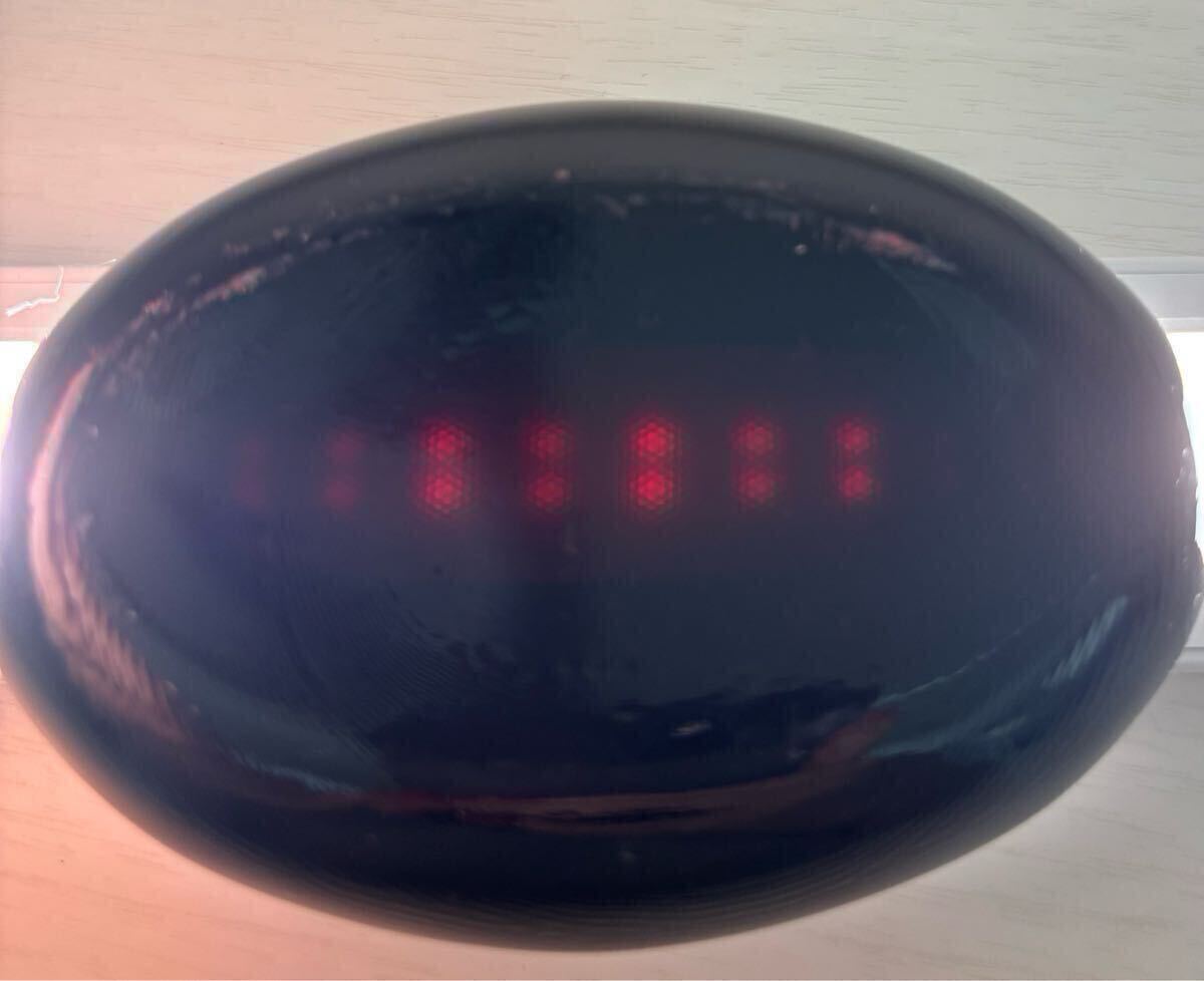 漆黒のガラスのように見えますが、実は、濃い赤色のガラスでできており、強い光を当てると画像のように