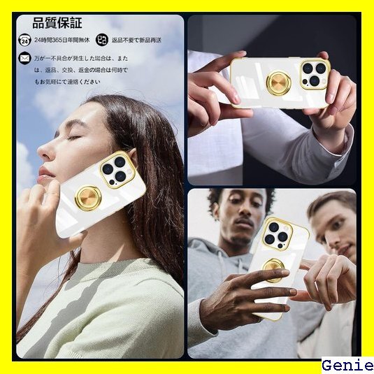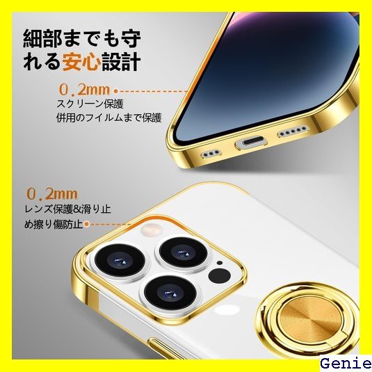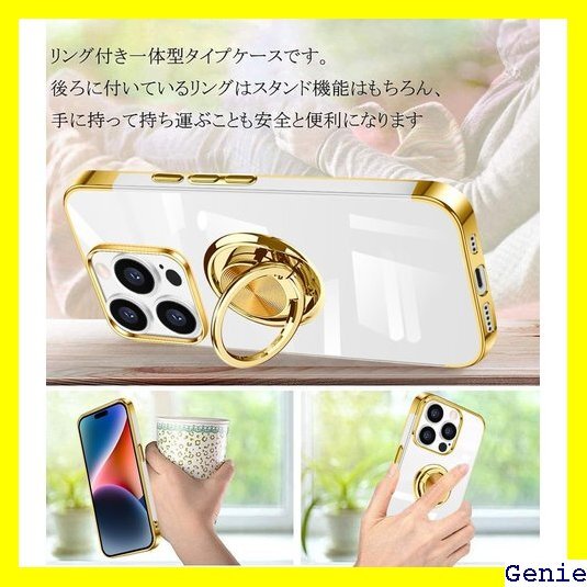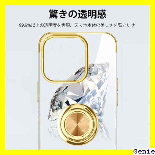 iPhone 15 Pro 用 ケース リング付き ク 落下防止 ストラップホール付き 透明 TPU ゴールド 55
