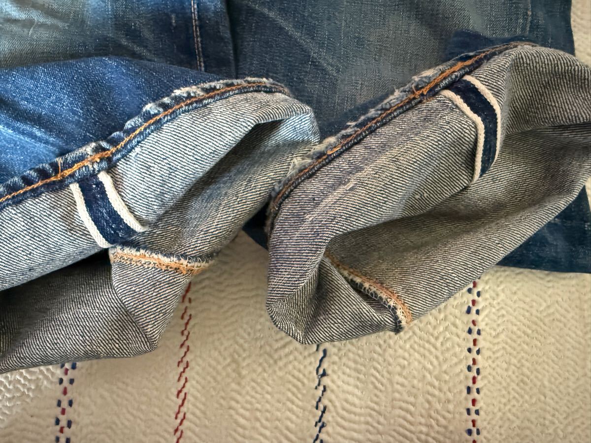 生地も分厚く40年代のハリとゴワつき感もあり色残りも約75%の良好なコンディションで、のちのギャラ入り紙パッチモデルよりも太めのシルエットです。