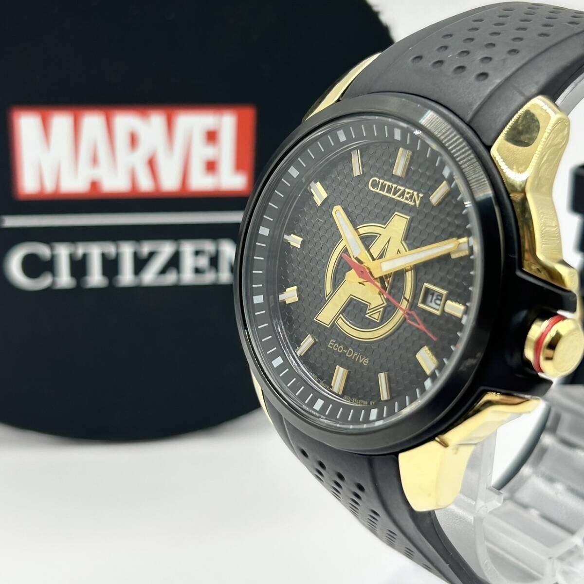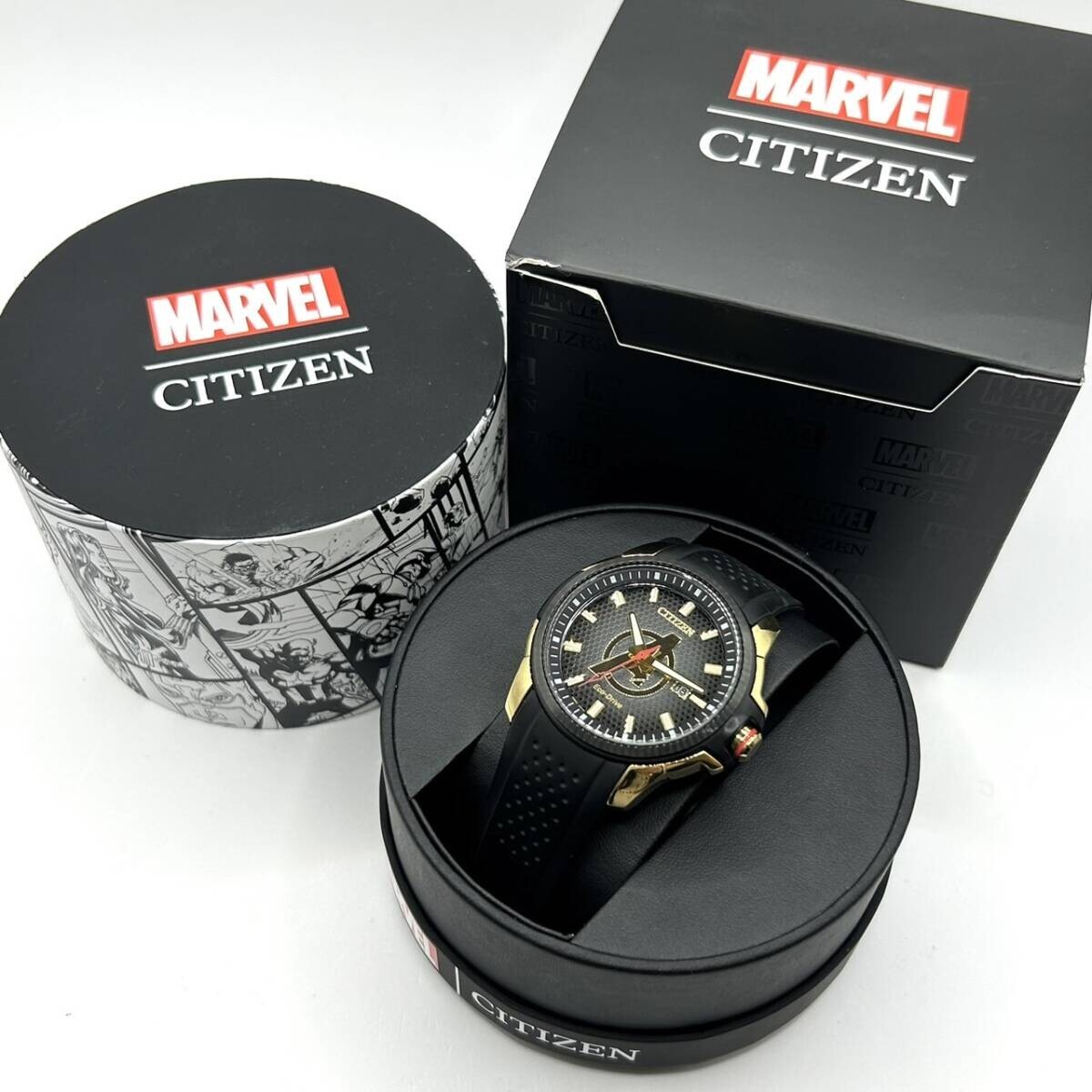 保証期間内可動品★CITIZEN×MARVEL/シチズン×マーベル 腕時計 AW1155-03W 箱付きアベンジャーズ エコドライブ ソーラー メンズ AE2405