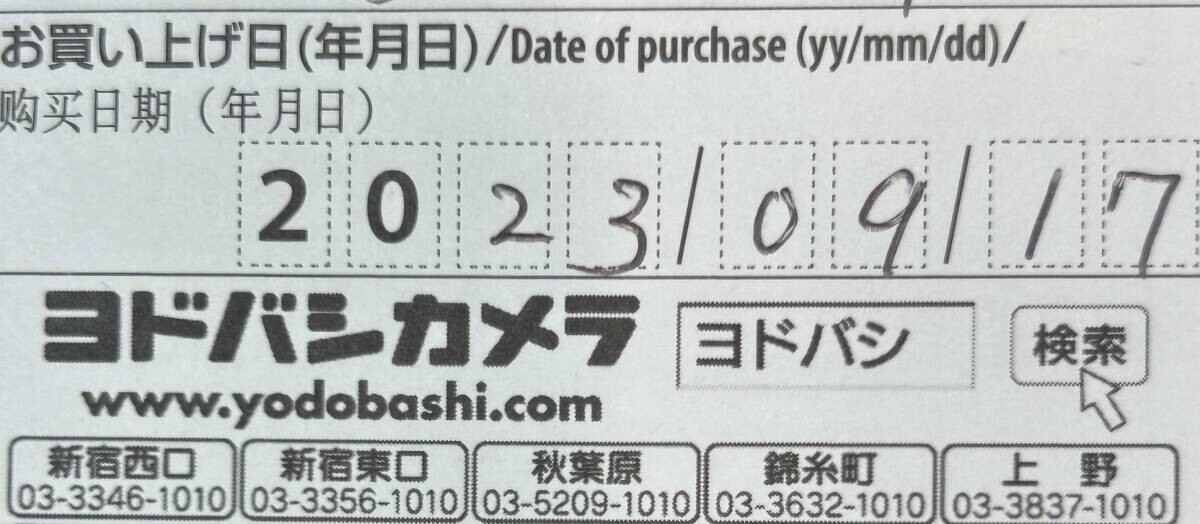 こちら商品購入日が【2023/09/17】です。