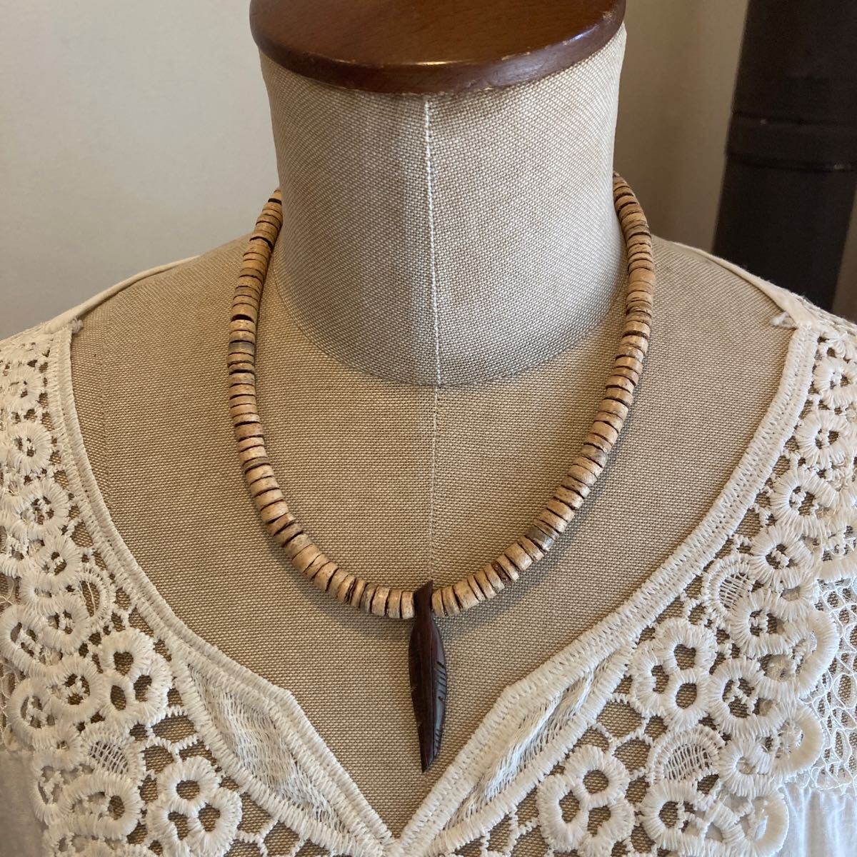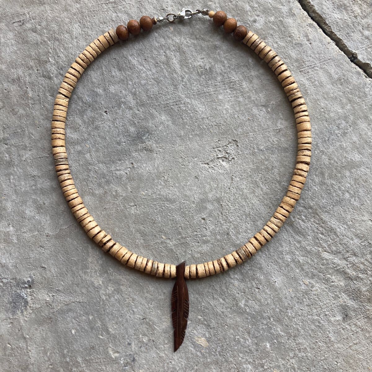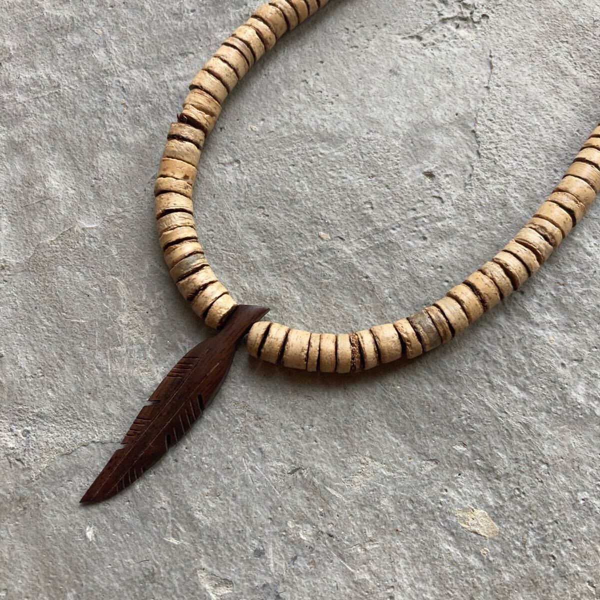ココナッツビーズにナチュラルなアイテムを合わせたオリジナルネックレスです。