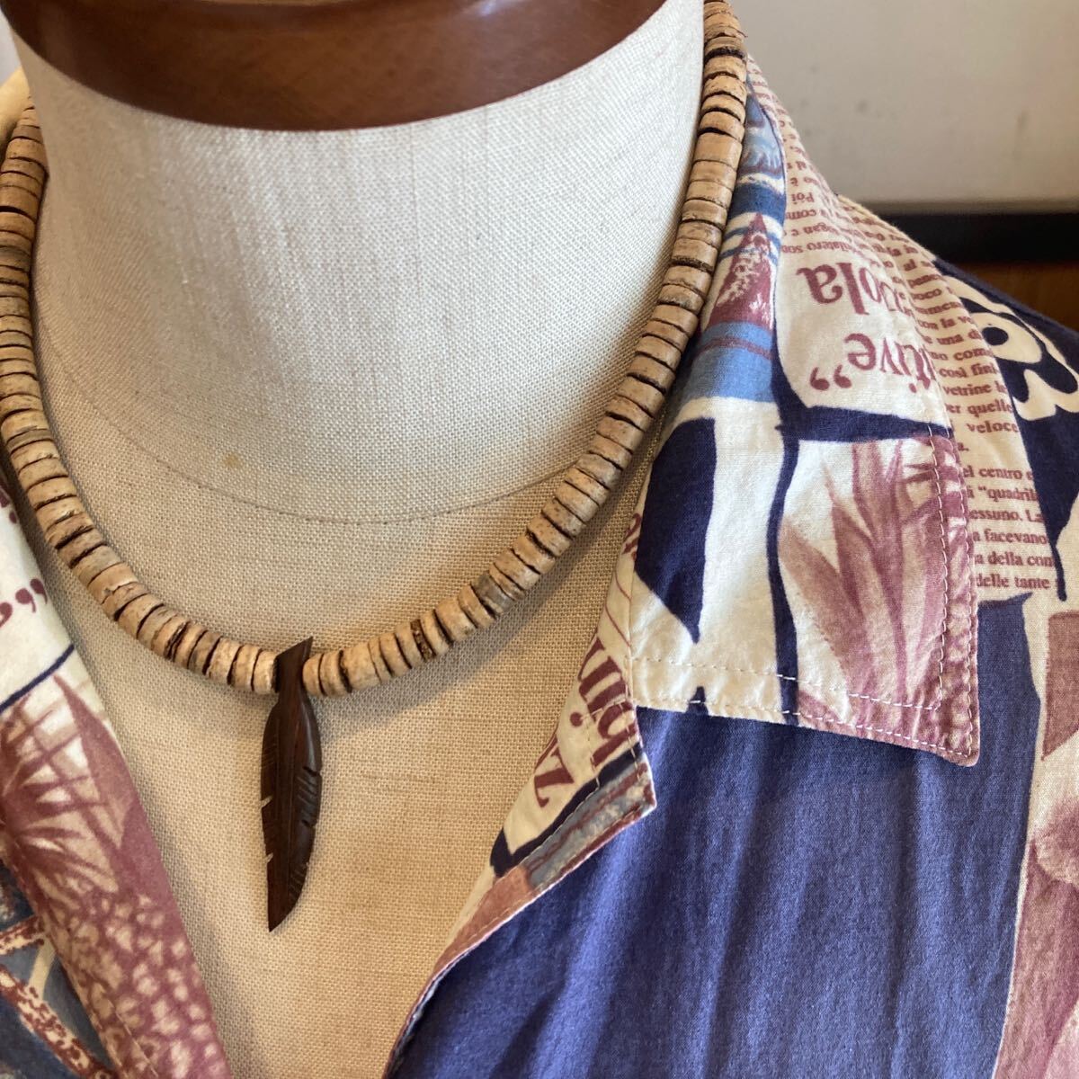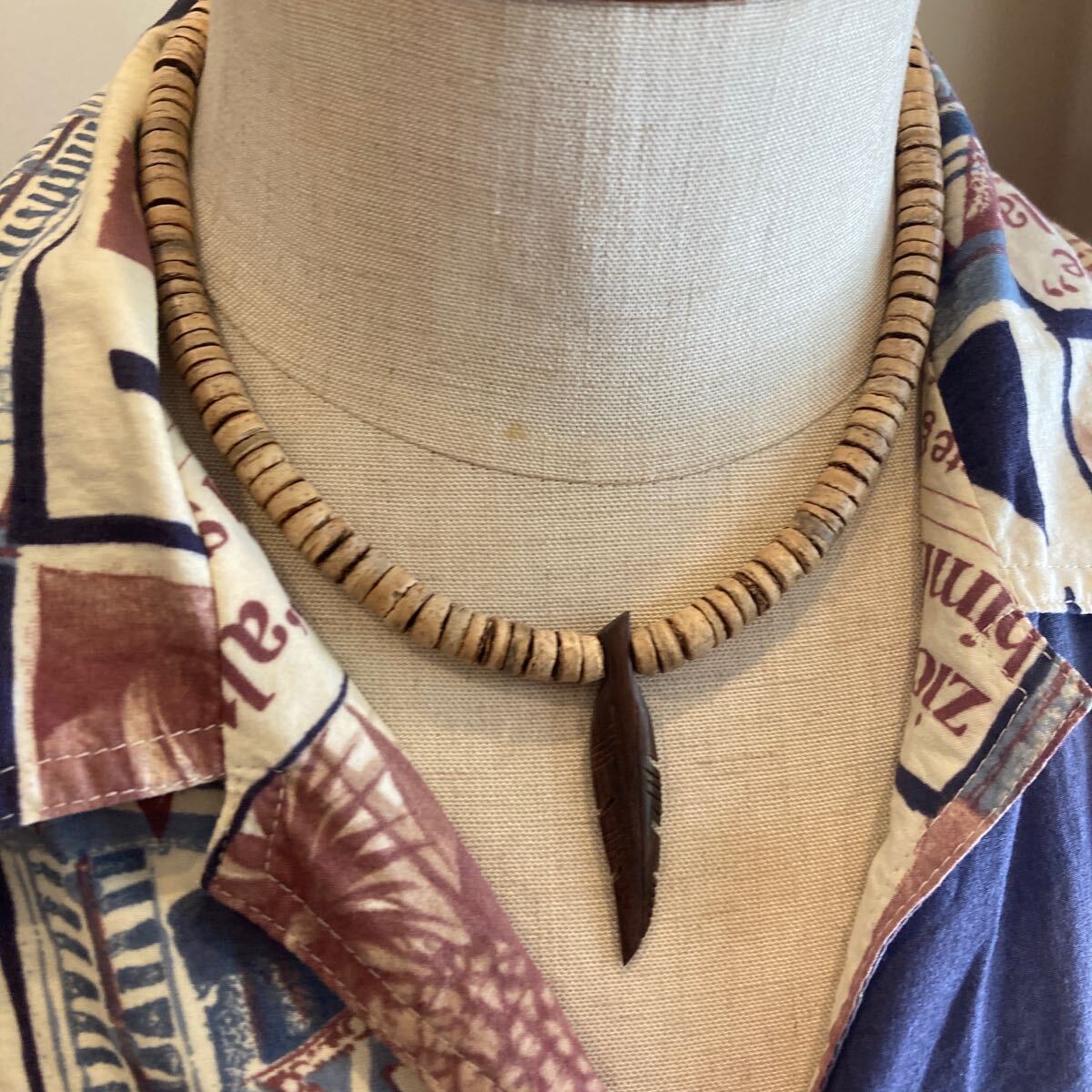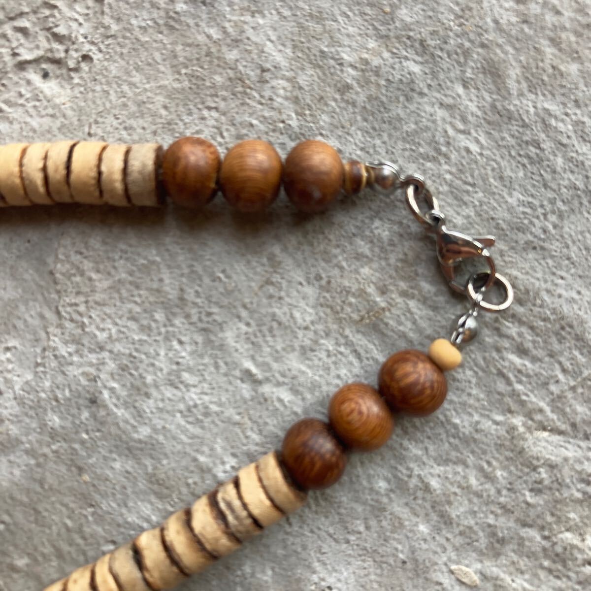 ココナッツビーズにナチュラルなアイテムを合わせたオリジナルネックレスです。