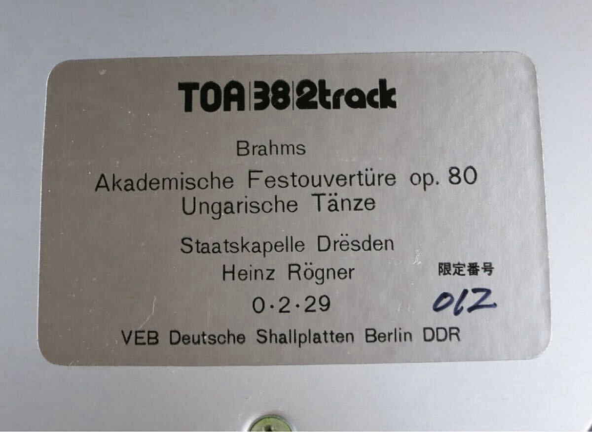 【TOA 38 2track】H.レーグナー:ブラームス 大学祝典序曲OP80 メタルリール TOA音楽工房 オープンリール