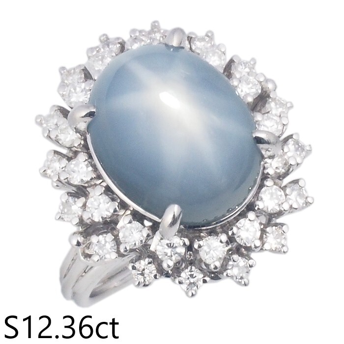 詳細:ノーブランド スターサファイア/12.36ct ダイヤ/0.66ct Pt900 デザイン リング 11号 ソーティング付き 仕上済