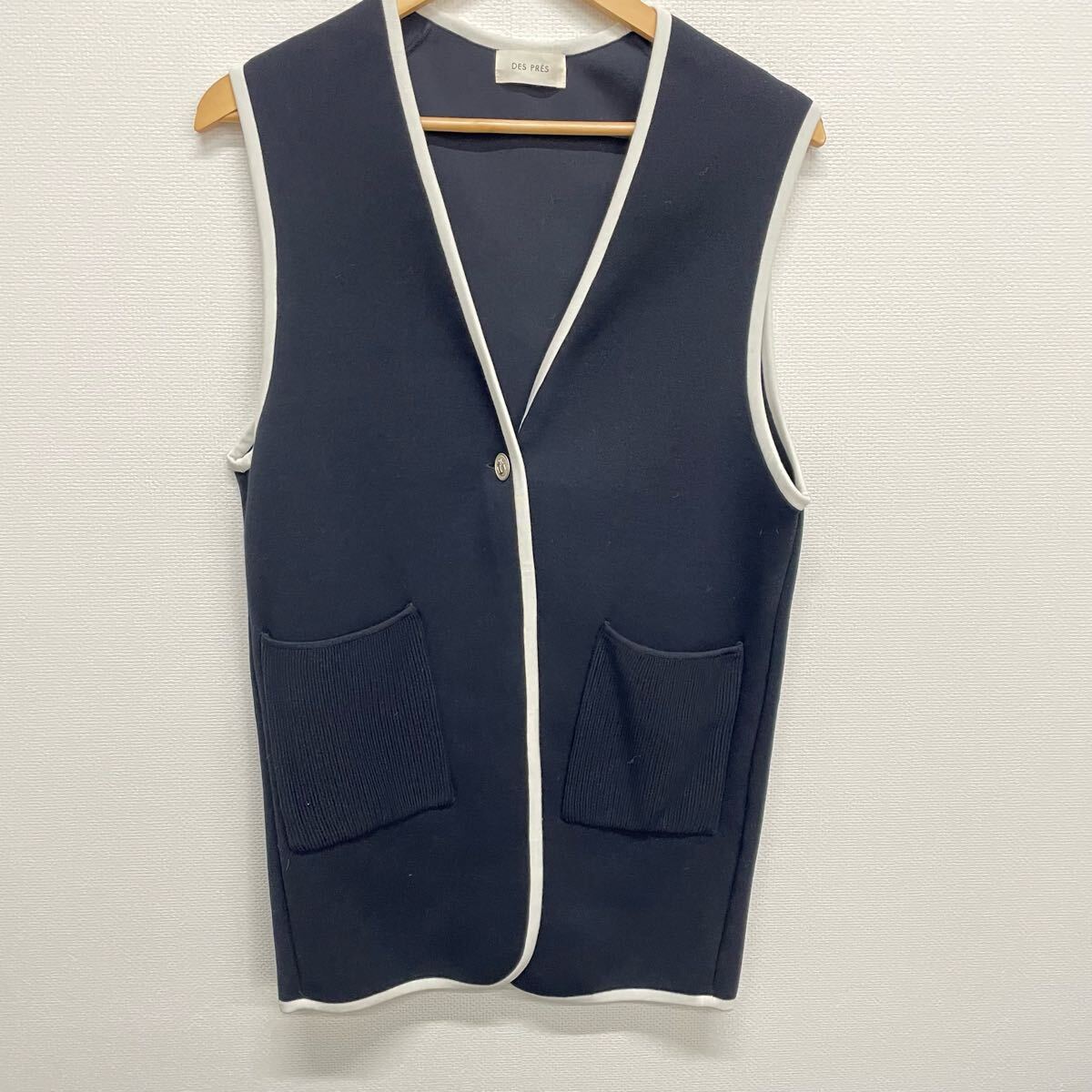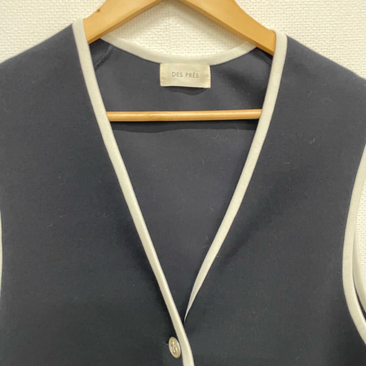 【DES PLES】デプレ★レーヨンナイロンダブルフェイス Vネックジレ sizeFREE ブラック 22075107015 EL
