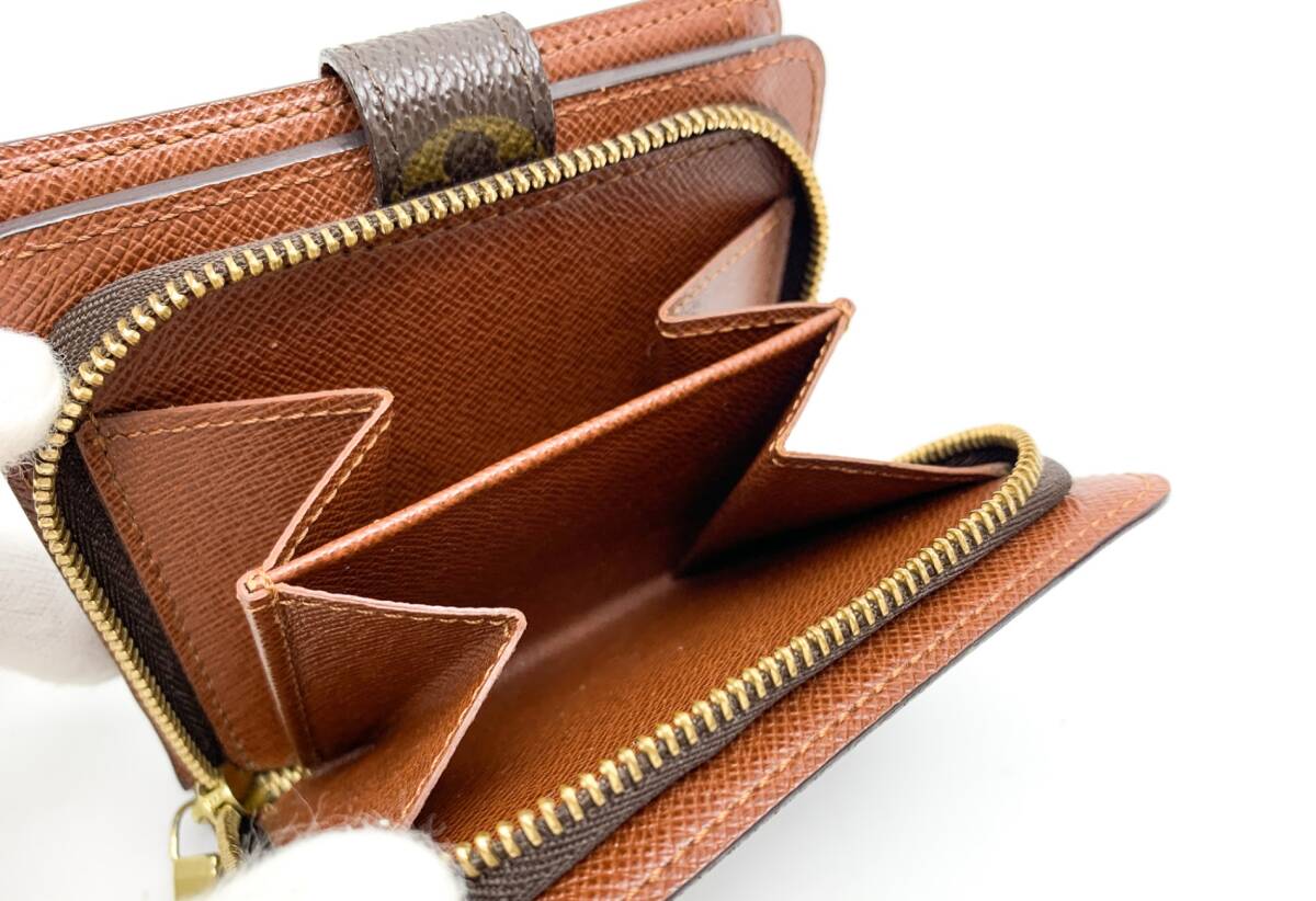 | ルイヴィトンより、二つ折りサイフになります。コイン入れとカード入れが独立しているので、使いやすいデザインです。シリアル番号CT1011です。ABランク。金具にクスミ・小傷・剥げございます。サイフ四角に反りあり。ルイヴィトン特有の革の臭いあり。コイン入れ内側うっすら汚れあり。内側一部擦れがございますが、まだまだお使いいただけるお品です。 | |