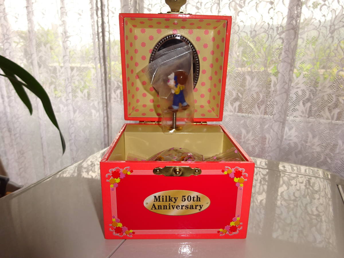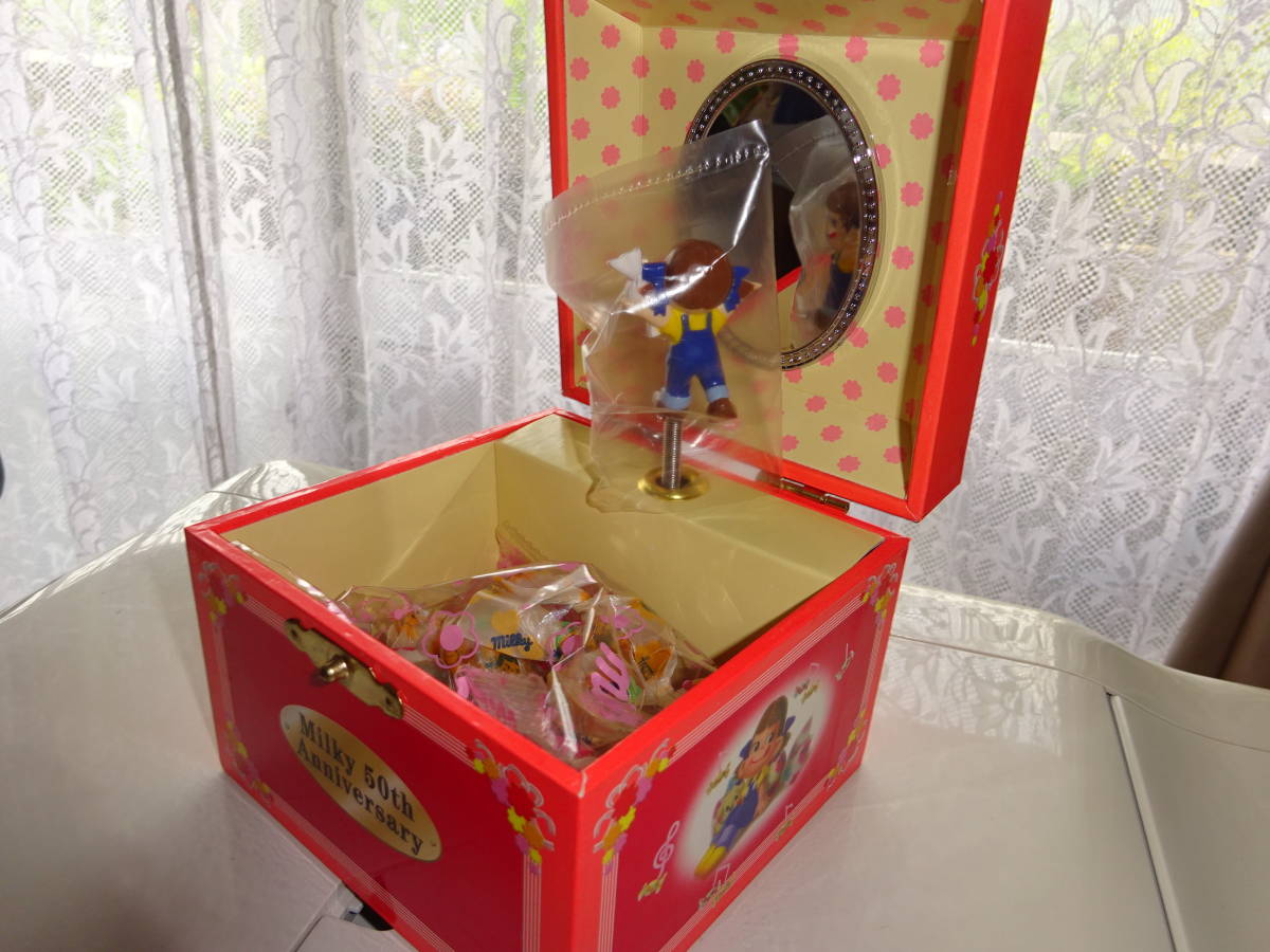 【即決】不二家 ミルキーオルゴールBOX(♪みるきーはママの味のメロディでペコちゃんが回ります)新品