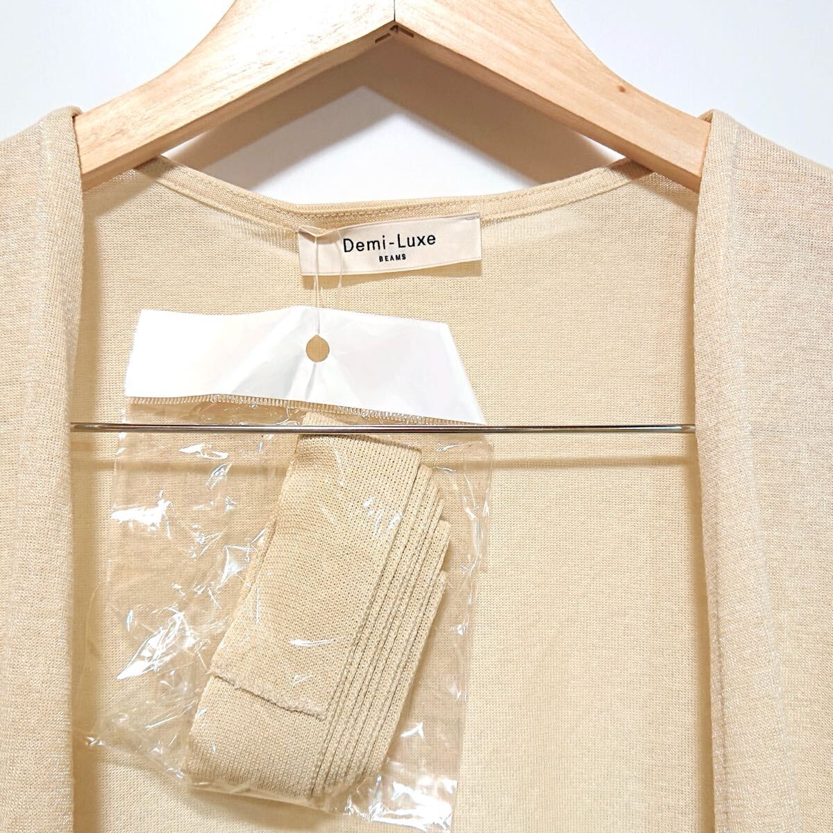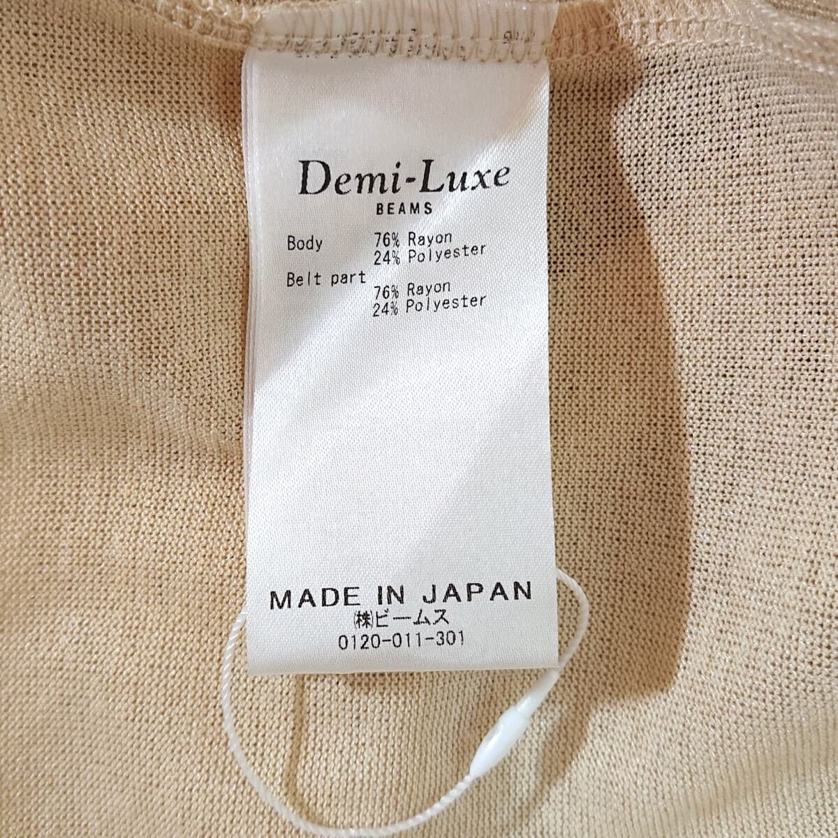 h3206gg 日本製 Demi-Luxe BEAMS(デミルクスビームス)サイズFREE カーディガン ベージュ系 レディース 羽織り 春夏 脇スリット リボン付