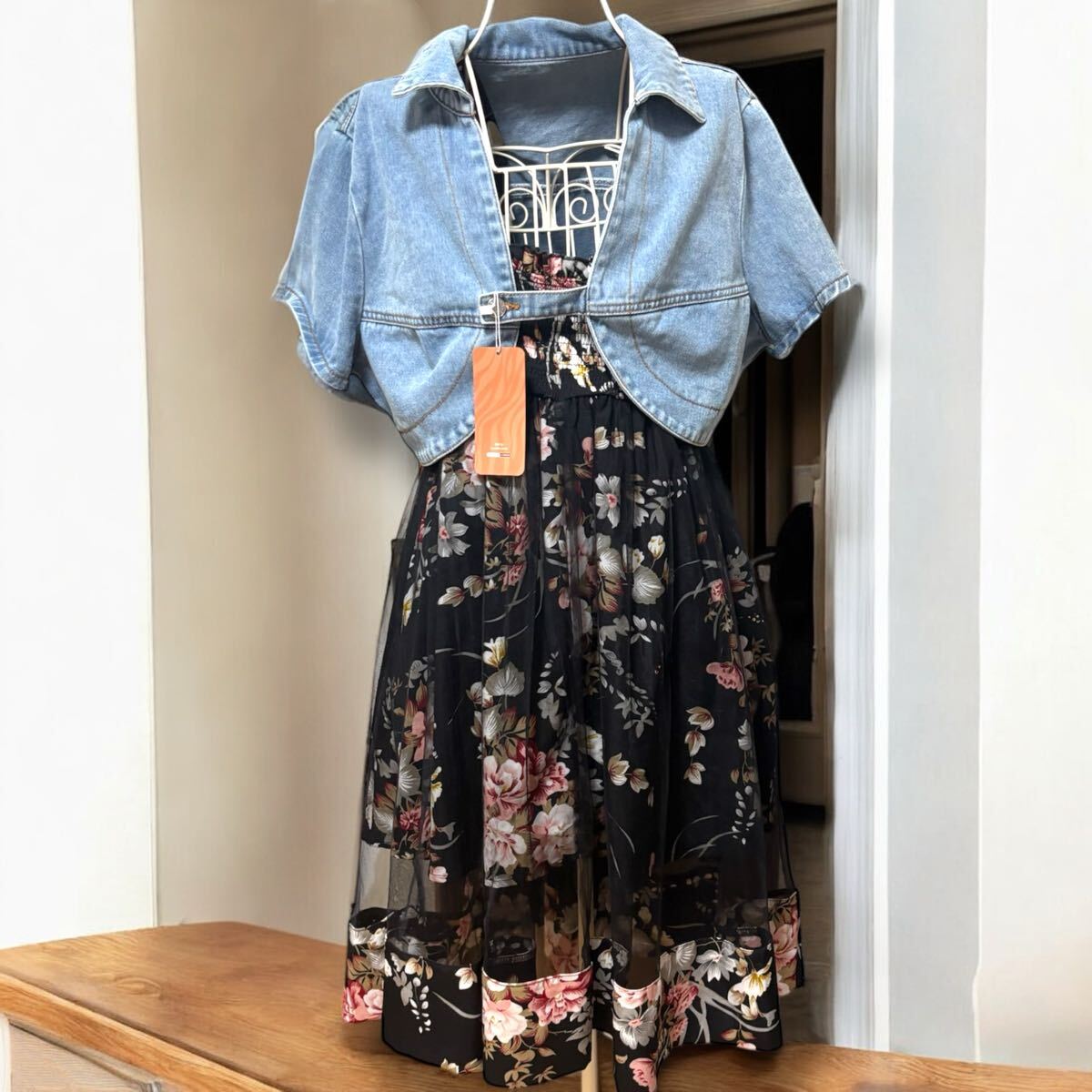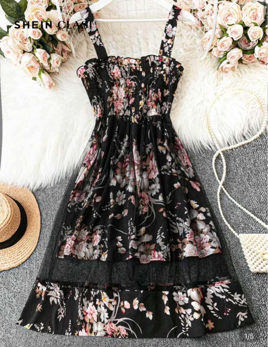 ◎ Clasi プラスサイズの花柄メッシュスパイスキャミドレス、カジュアルウェア用のバケーションウェア X L