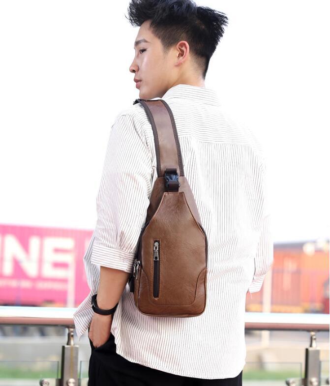 新作お色選択可 ボディバッグ ワンショルダーバッグ メンズ 斜めがけUSBポートPUレザーイヤホン穴 大容量 撥水 カジュアル ダークブラウン