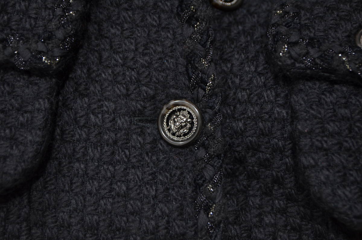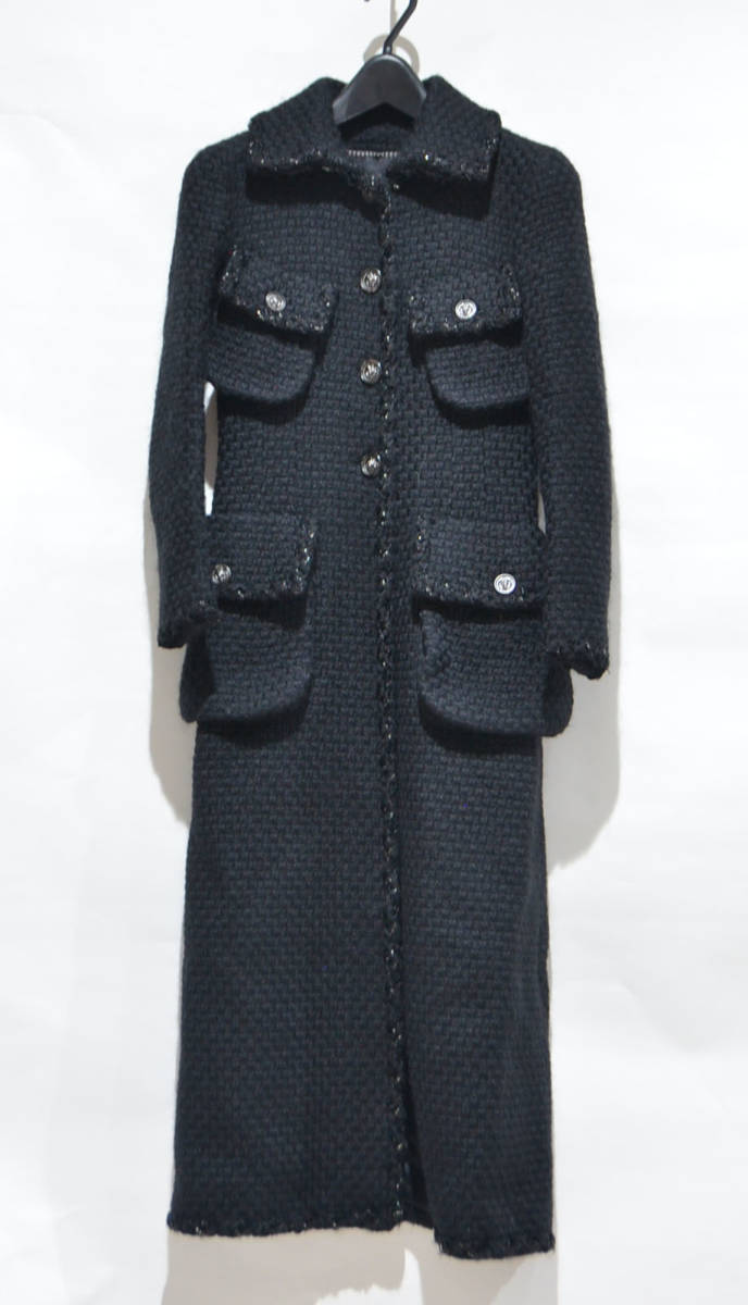 シャネル CHANEL ライオン ボタン ブラック ツイード コート 黒 Y-315646
