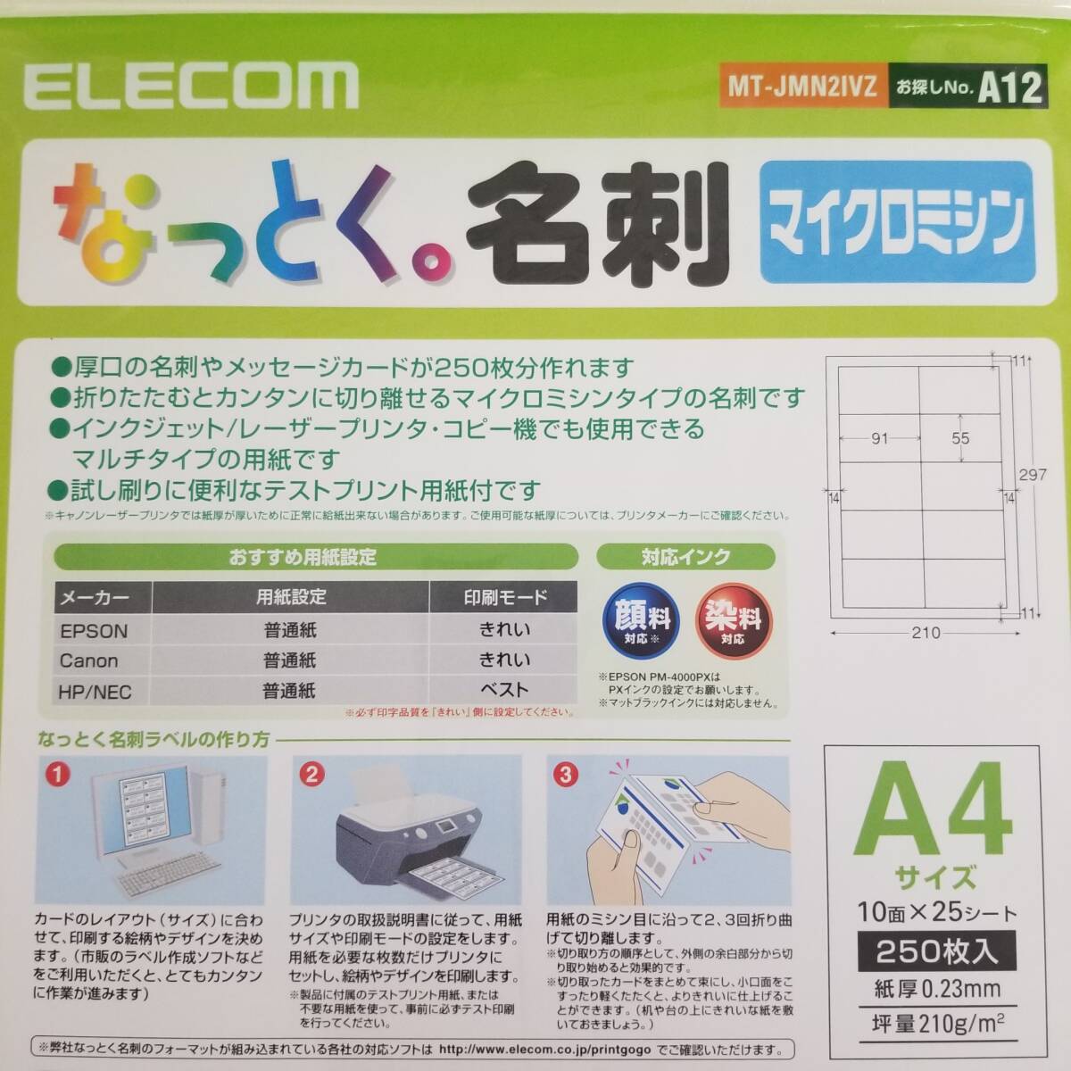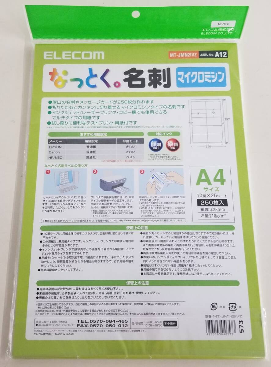 | ELECOM エレコム なっとく。名刺 アイボリー マイクロミシン マルチプリント紙 厚口 両面 印刷対応 10面 25枚入 250面 大増量 MT-JMN2IVZ | ||||||||