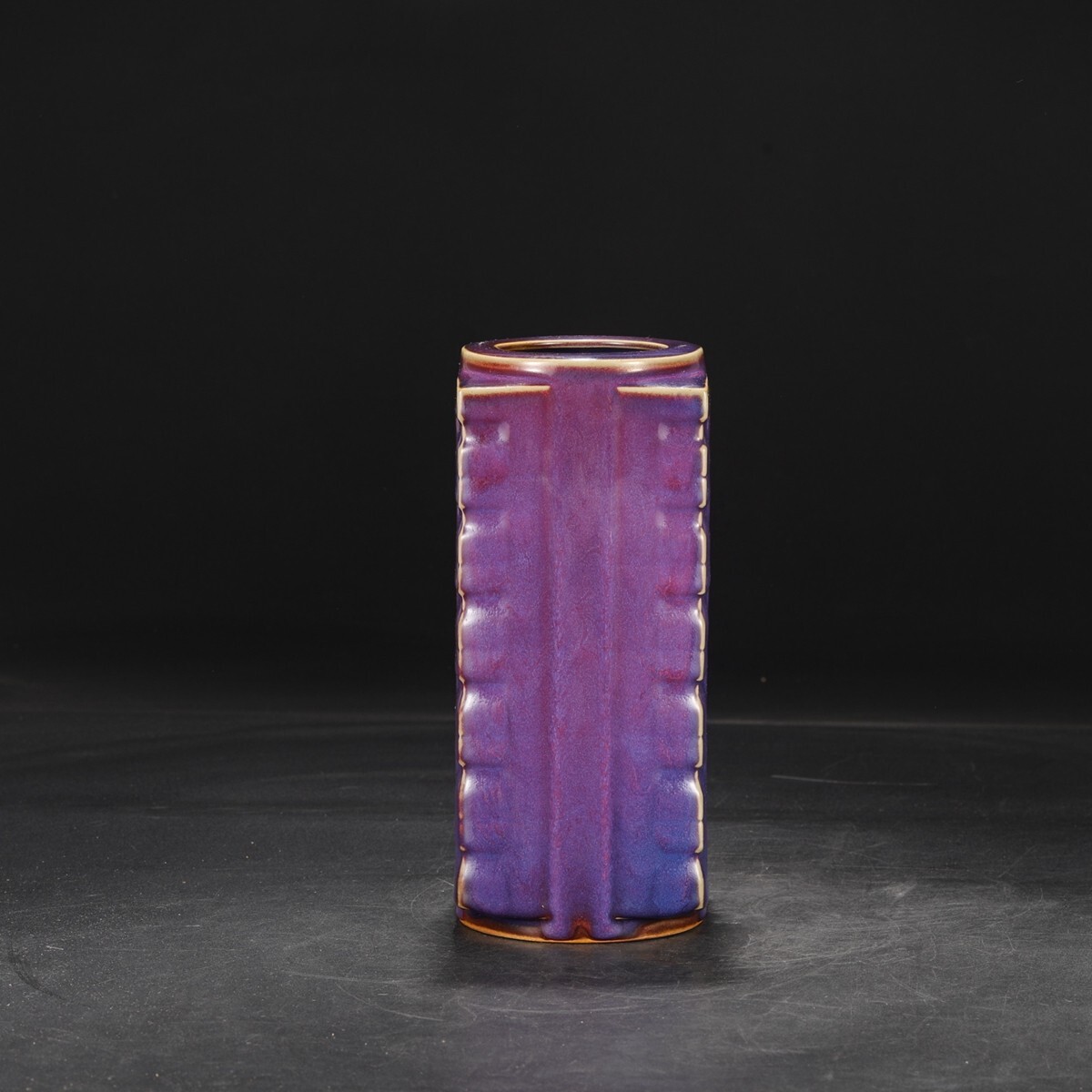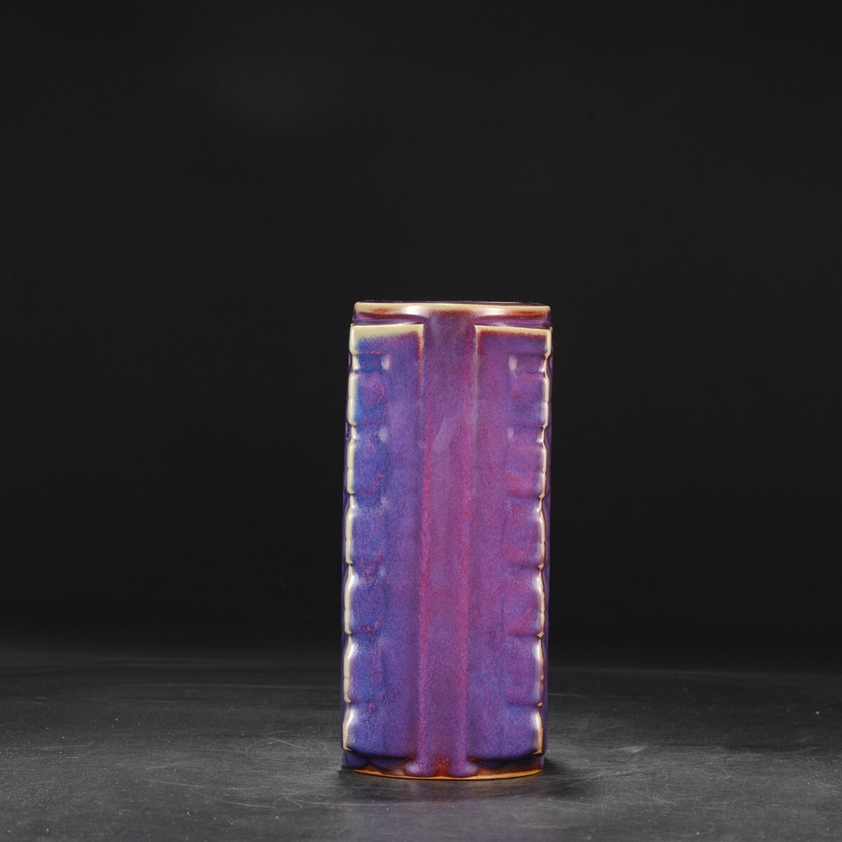 「宋 鈞官窯 陶磁器 薔薇紅紫御用 琮式瓶」染付 置物 擺件 古賞物 中国古美術 旧蔵出