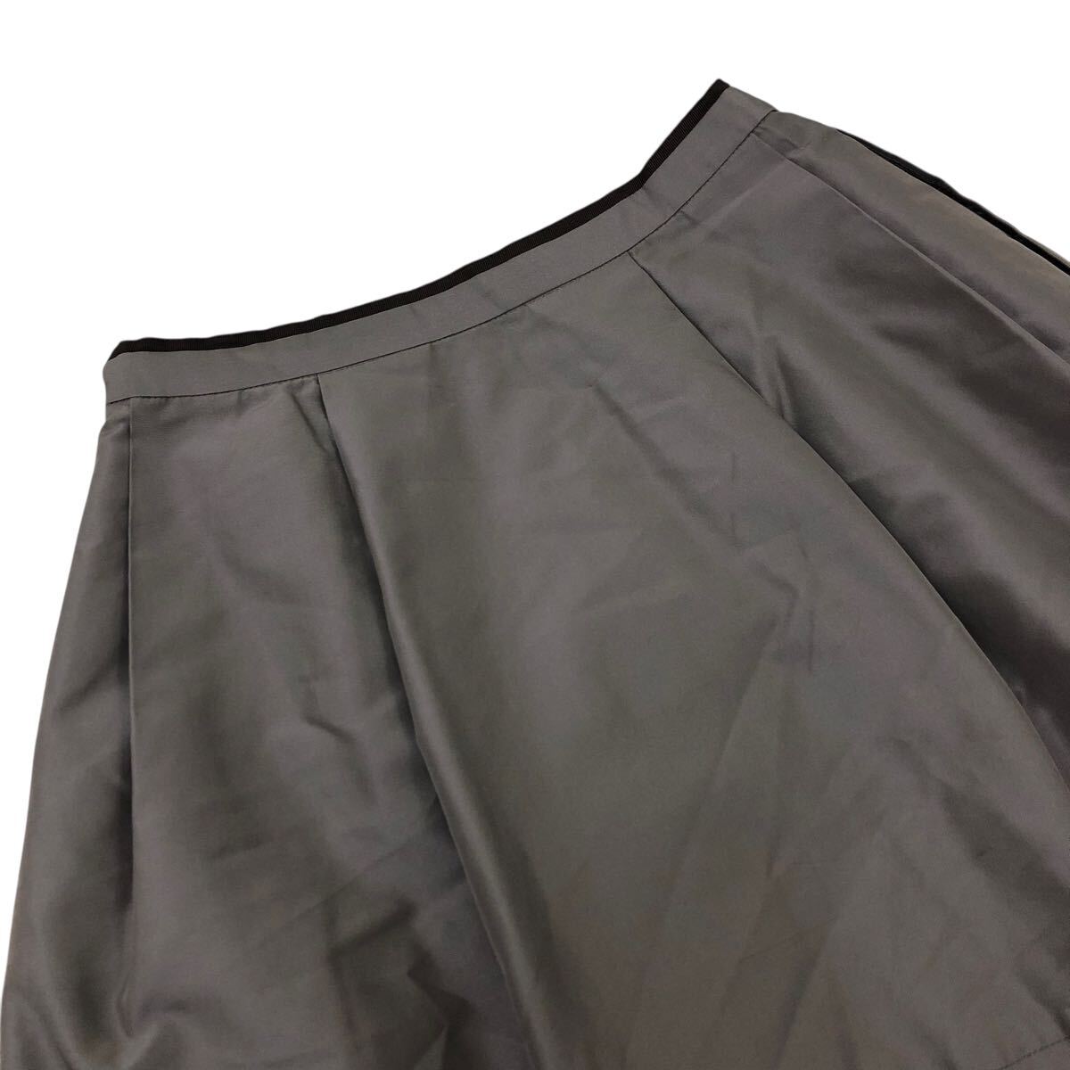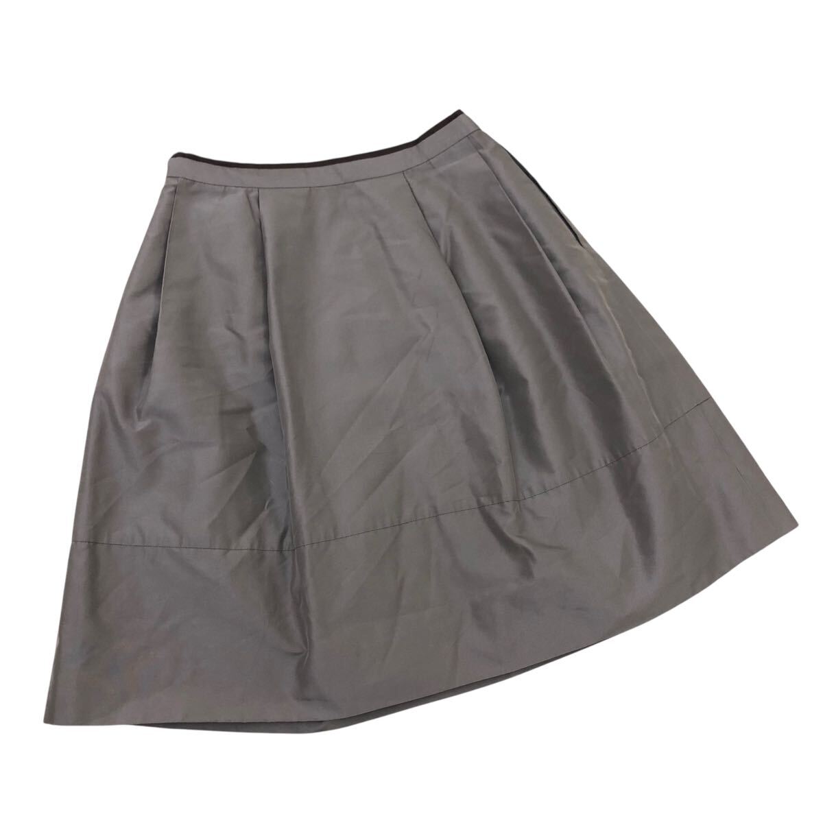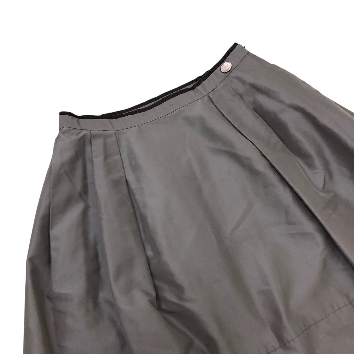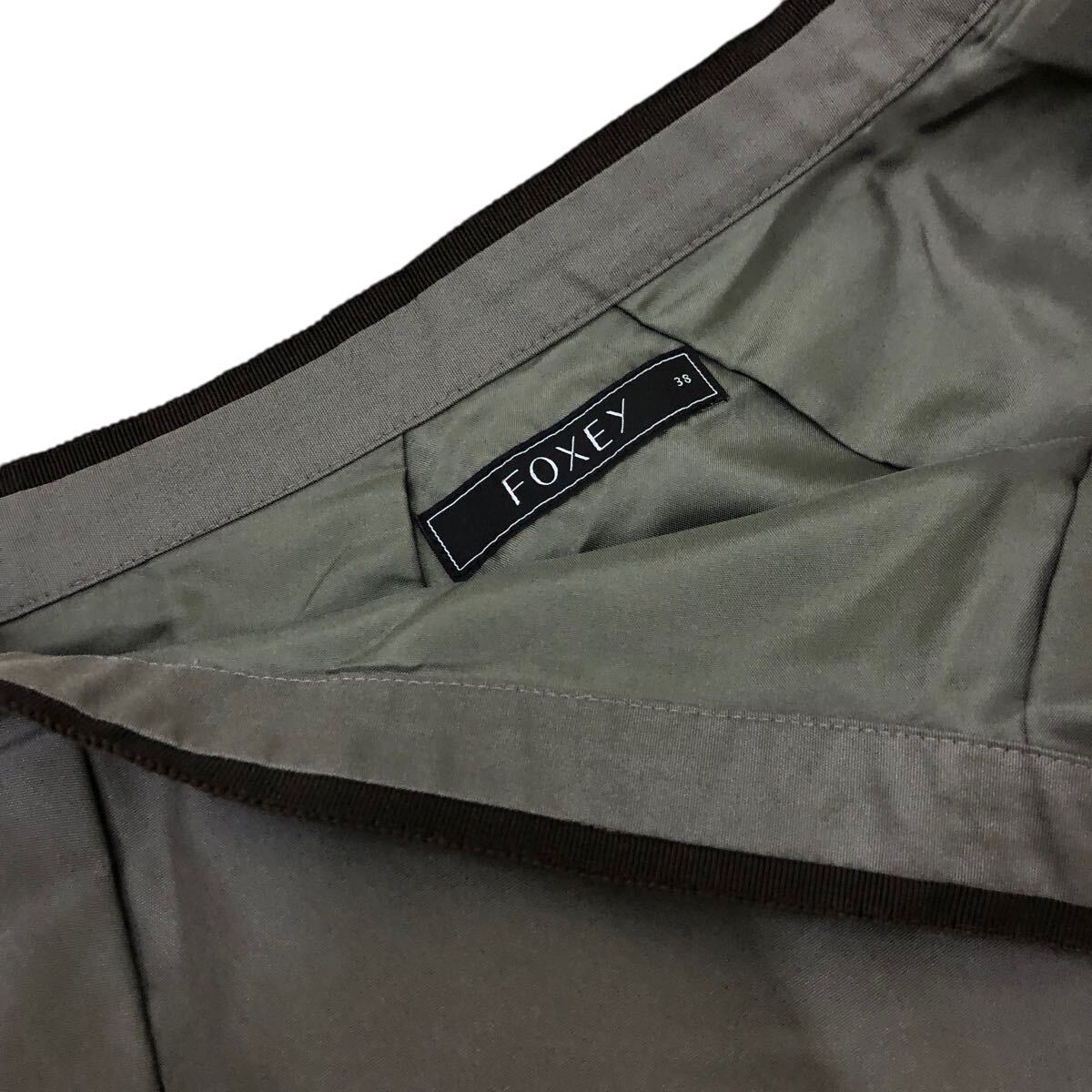 m630-74 FOXEY フォクシー シルク 絹 100% タフタ タック フレアスカート スカート ボトムス カーキ系 ブラウン系 レディース 38 日本製
