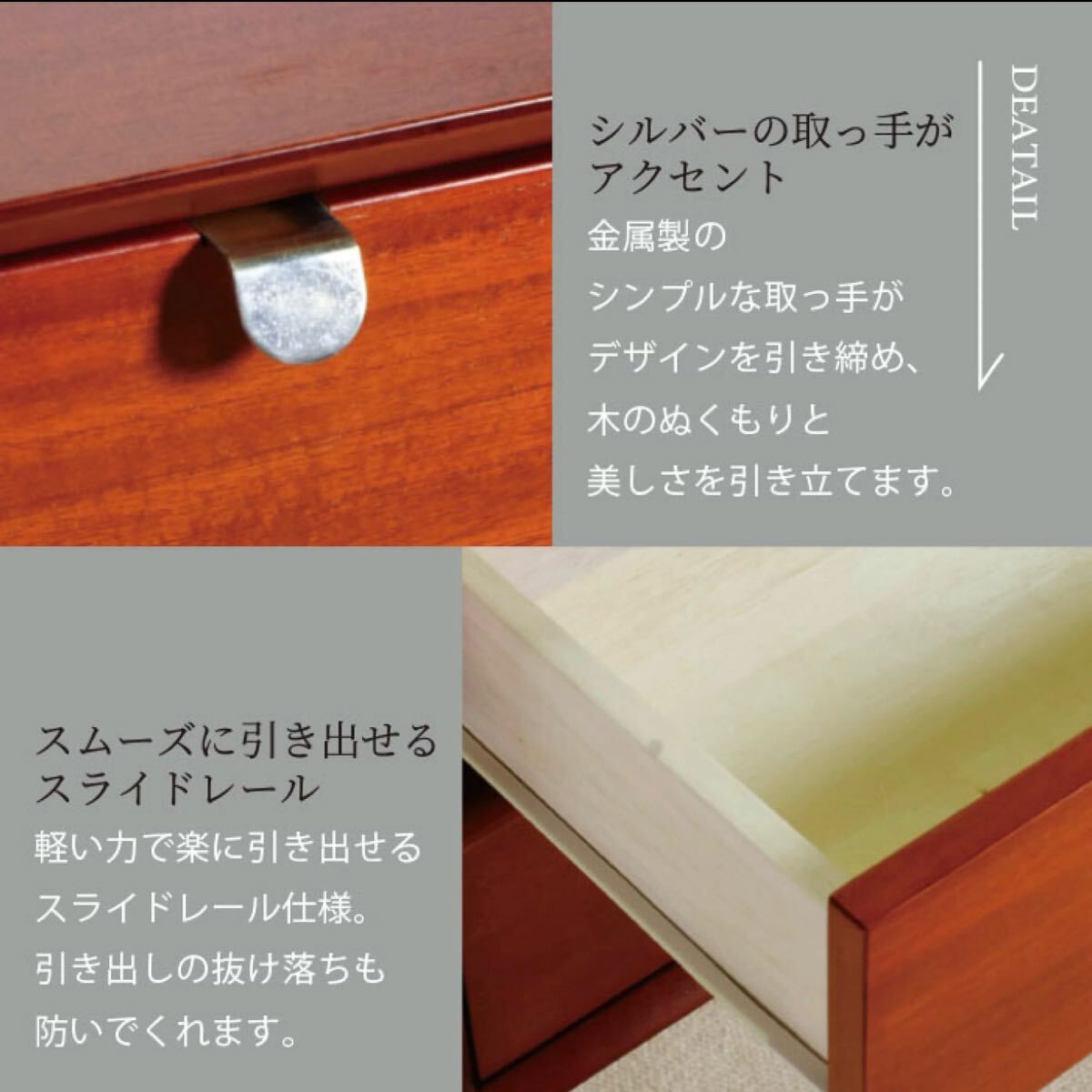 ・引き出しは、スライドレール付きでスムーズに開閉出来ます。