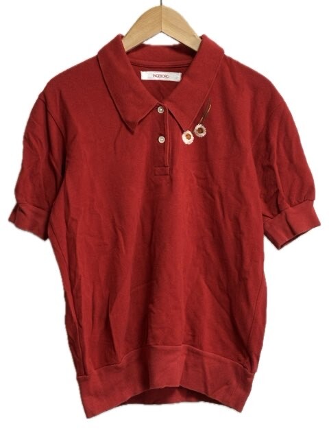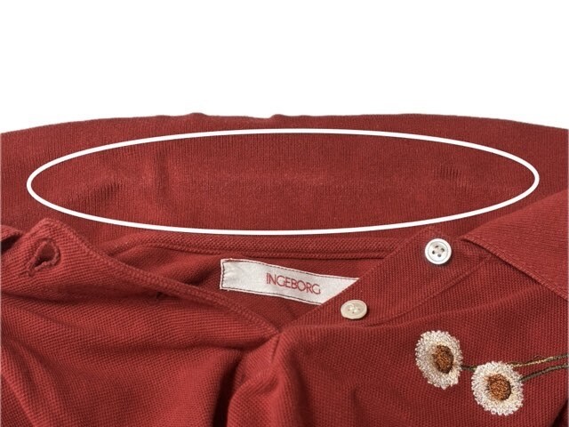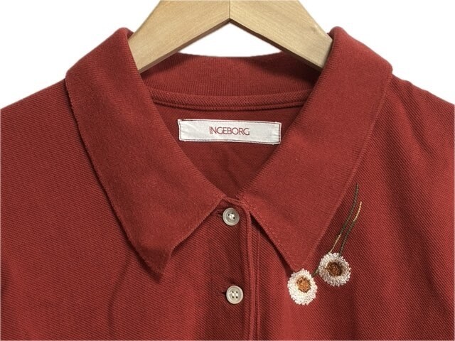 インゲボルグ INGEBORG ポロシャツ フラワー刺繍 コットン レッド 赤 半袖 トップス レディース