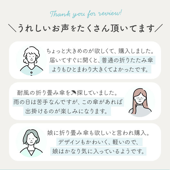 | 注意点 | ※※本製品に尖った部分があります。周りの人やものにあたらないよう、周囲の安全を確認してからご使用ください。 ※傘の開閉時やシャフトの伸縮時には、顔や身体から離してご使用ください。 ※本製品の手元や骨が折れたりした場合には、怪我や事故になる恐れがあるため、使用を中止してください。 ※強風の時は、本製品が破損する恐れがありますので使用しないでください。 ※本製品をステッキとして使用するなど、傘本来の目的以外での使用は止めてください。 ※本製品は、自転車・ベビーカーなどの固定する器具に取り付けて使用する構造になっておりません。視野の妨げ、事故・破損の原因となる恐れがありますので、絶対に取り付けないでください。 ※本製品は、構造上、骨同士が狭くなっているので、骨に挟まれたり怪我をする恐れがありますので、手や指を入れないでください。 ※ハンドクリームや日焼け止めクリーム等が、本製品の生地・手元等の色落ちの原因になる場合があります。 ※ご使用後は、本製品を陰干しにして乾かしてからおしまいください。濡れたまま保管しますと、錆の発生や生地の色移りの原因となる場合があります。 ※お子様のお使いの際には、保護者の指導の上でご使用ください。 ※カメラやモニターの性質により、画像と実物の色の違いがある場合がございますのでご理解願います。 |