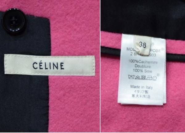 CELINE セリーヌ カシミヤ クロンビーコート ピンク R2A-156828 ☆