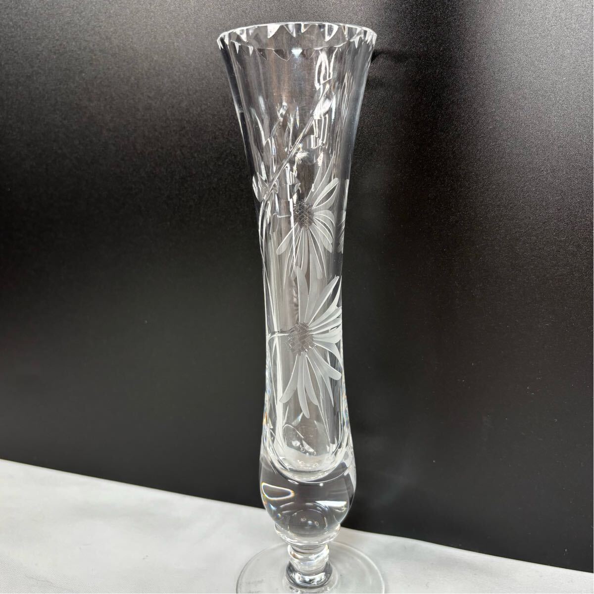 英国の老舗ガラスブランド「Royal Brierley(ロイヤルブライアリー)」のクリスタル製一輪挿しです。繊細な花模様のカットが施された美しいデザインで、透明度の高いクリスタルが上品な輝きを放ちます。