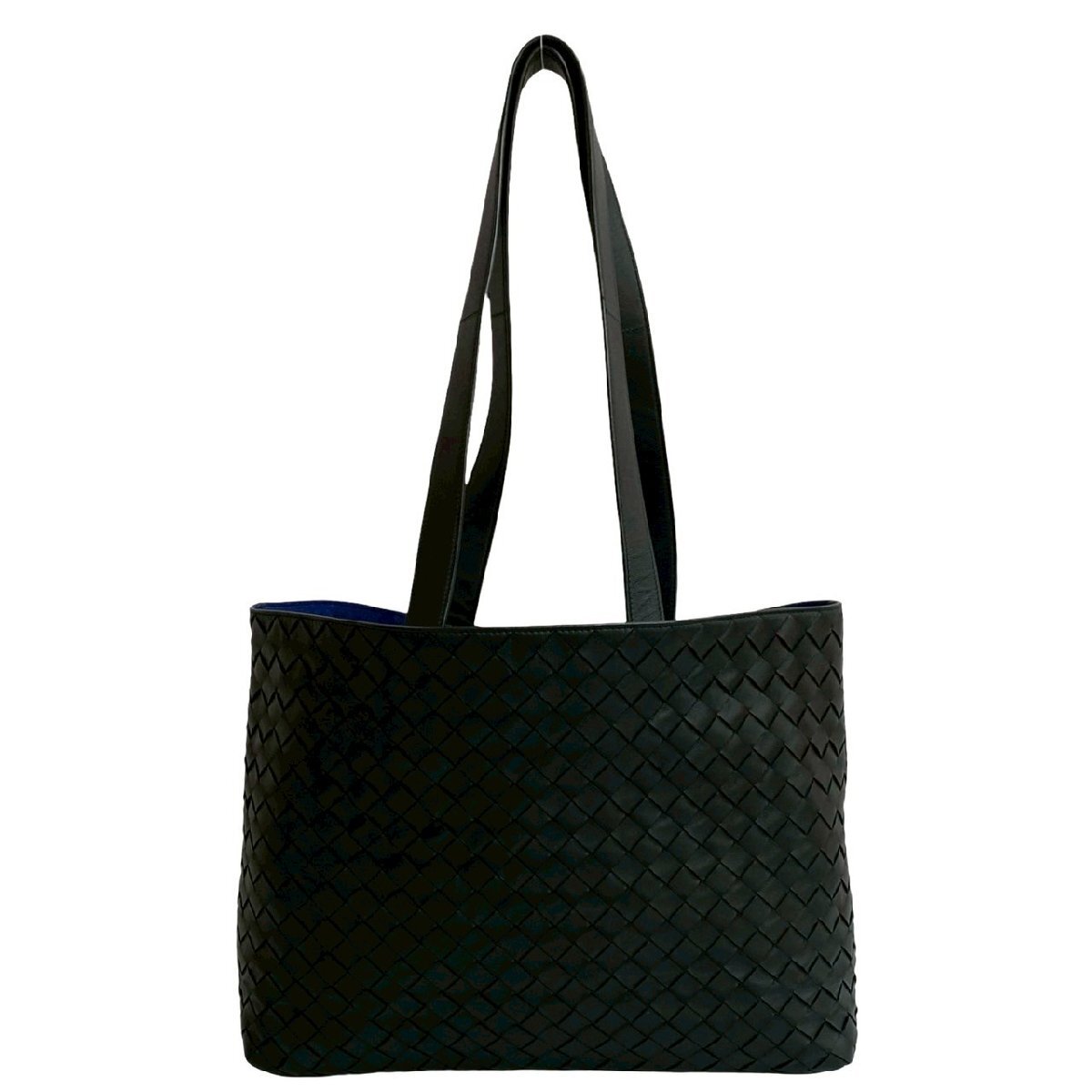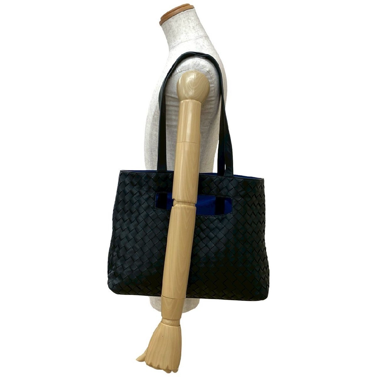 極 美品 BOTTEGA VENETA ボッテガヴェネタ ザ スロット イントレチャート レザー 本革 トートバッグ ハンドバッグ ブラック ブルー 59475