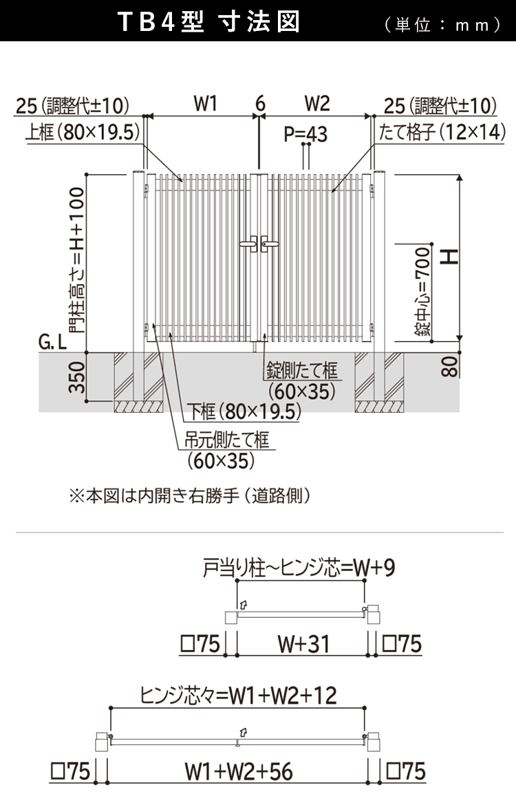 ・扉の開閉方向:内開き(家側へ開く)仕様