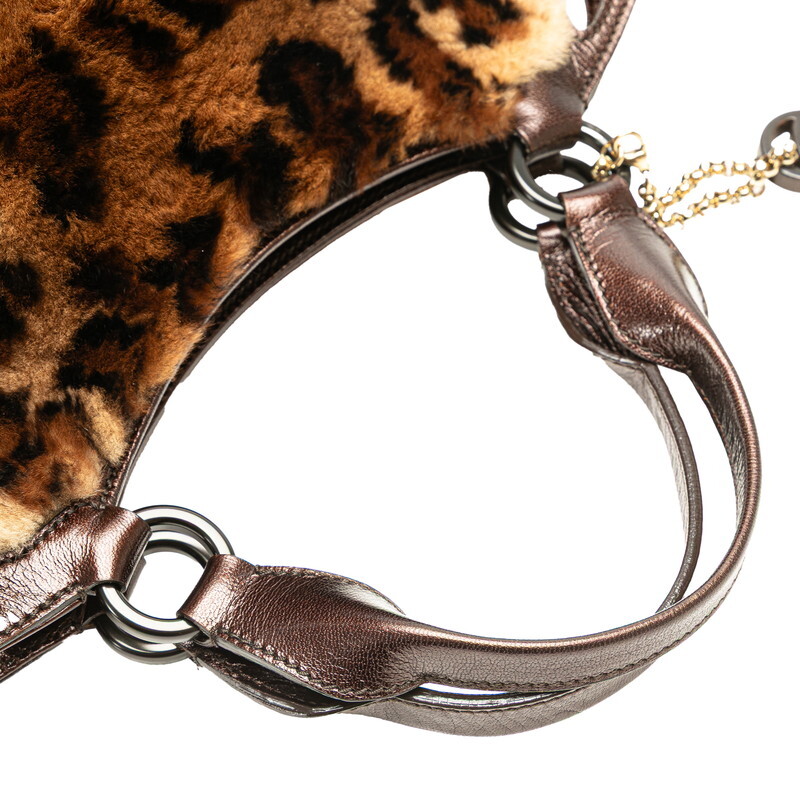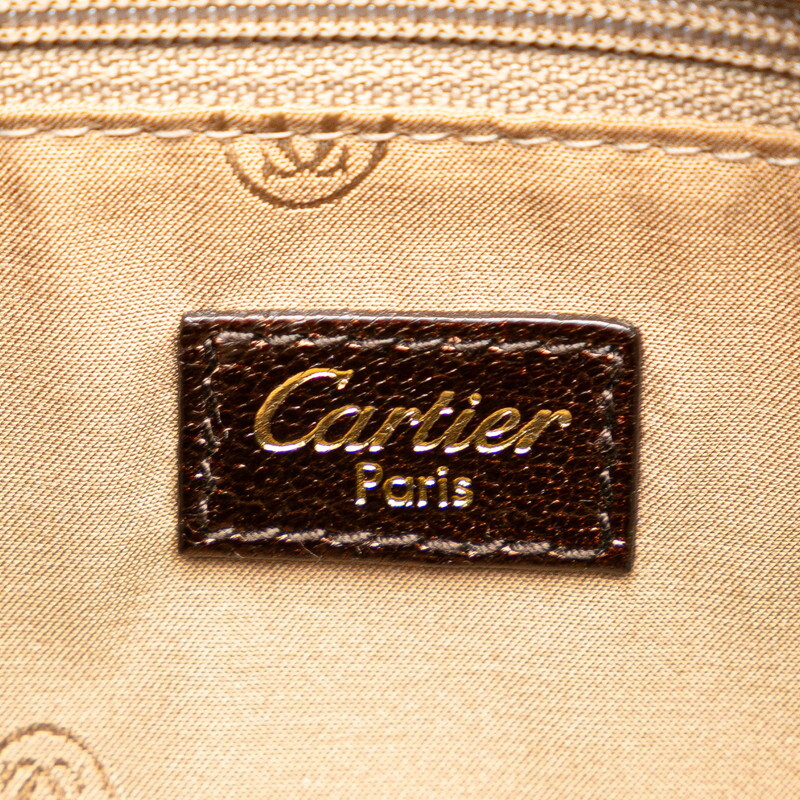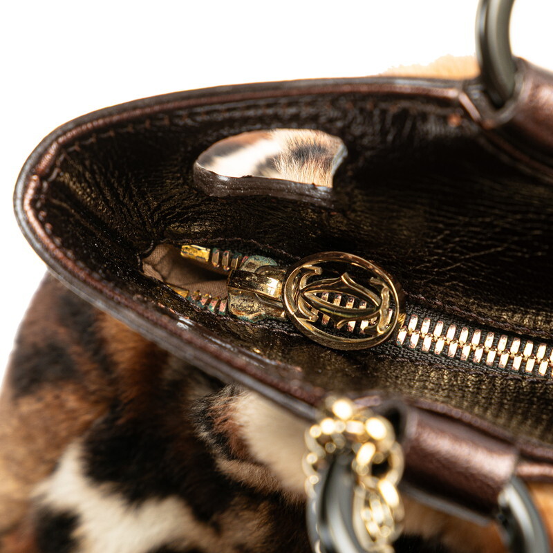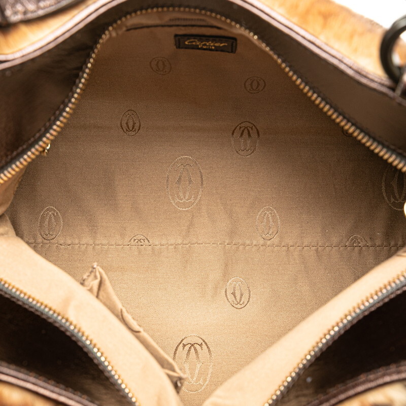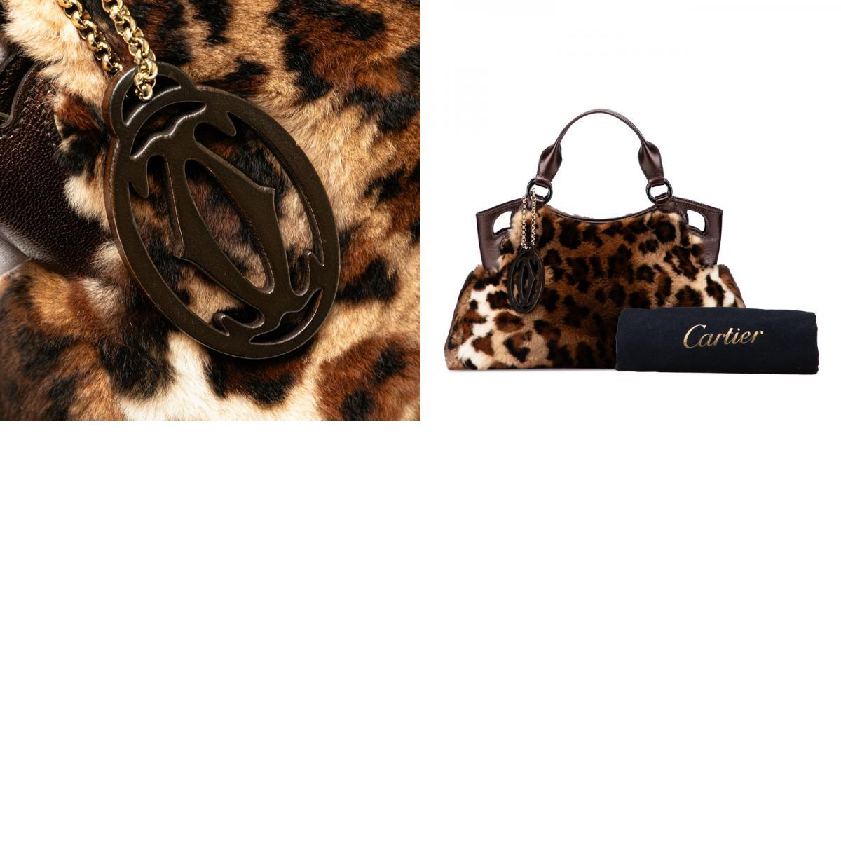 カルティエ マルチェロ レオパード ハンドバッグ ベージュ ブラウン レザー ラパンファー レディース CARTIER 【中古】