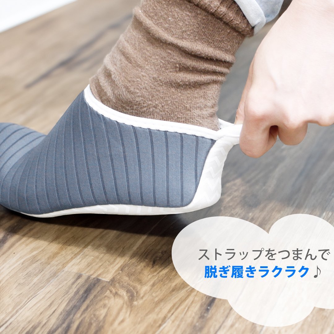 滑り止め付き 室内用シューズ (グレー/L) ルームシューズ 保温 断熱 インナーシューズ 靴 スリッパ スリッポン 授業参観 館内 脱ぎ履き簡単