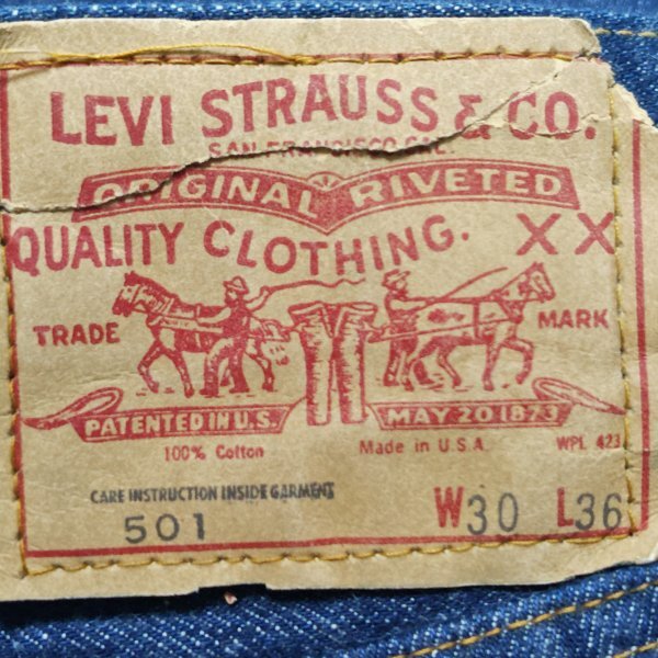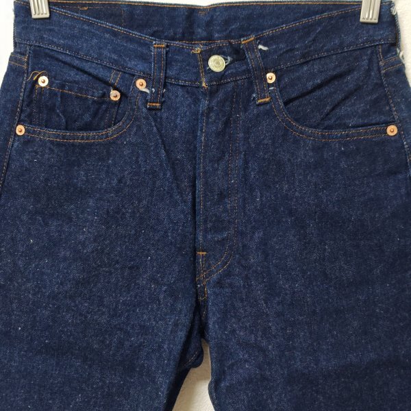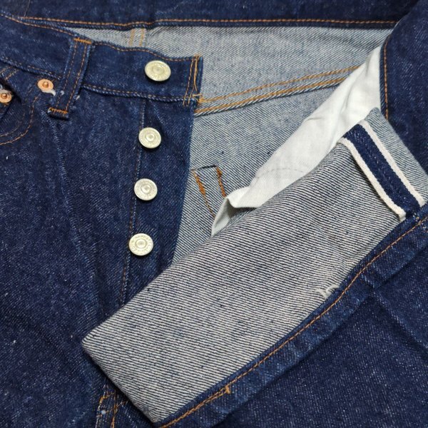 奇跡のワンウォッシュ!! 1977年製・Levi's501「66後期」赤耳付きヴィンテージ ジーンズ。濃紺リジットの美しさに加え、紙パッチ・トップボタン裏「6」刻印など、ディテールも完璧。時代を超えて受け継がれる本物の501は、デニム史を語るうえで外せない一本。洗練されたシルエットと硬質な風合いが、穿き込むほどに自分だけの表情を刻んでいく—まさに一生モノ。右ももに少し色落ちがあります。パッチが割れています。目立つダメージはありません。