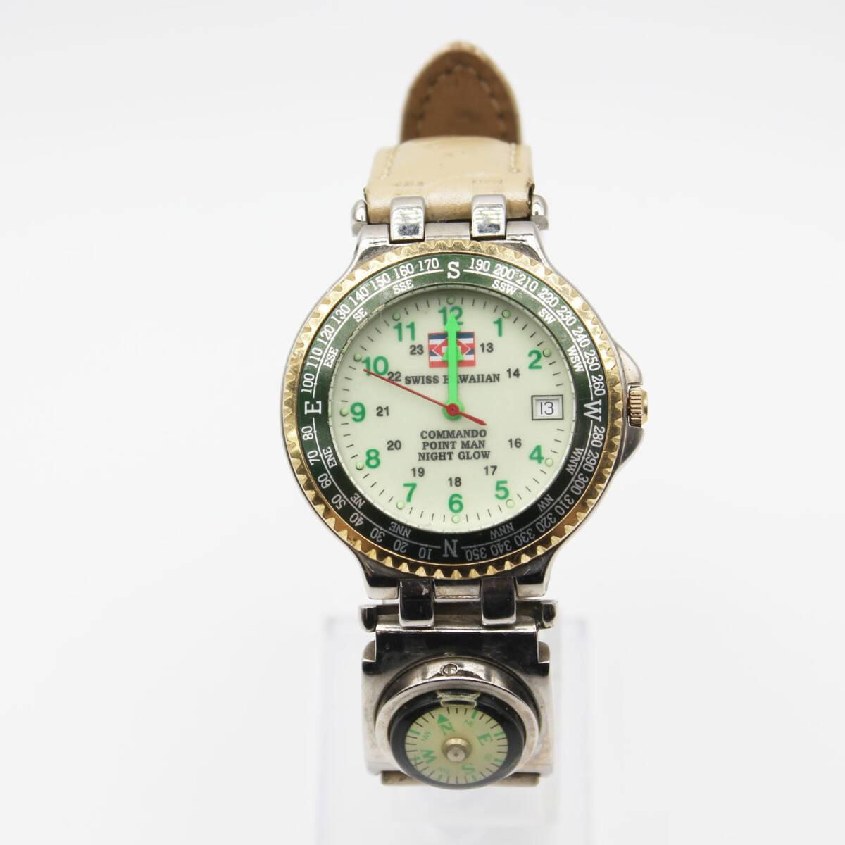 W250801-17 SWISS HAWAIIAN スイスハワイアン TM-1994-22 メンズ腕時計 クォーツ デイト ジャンク 文字盤ナイトグロー