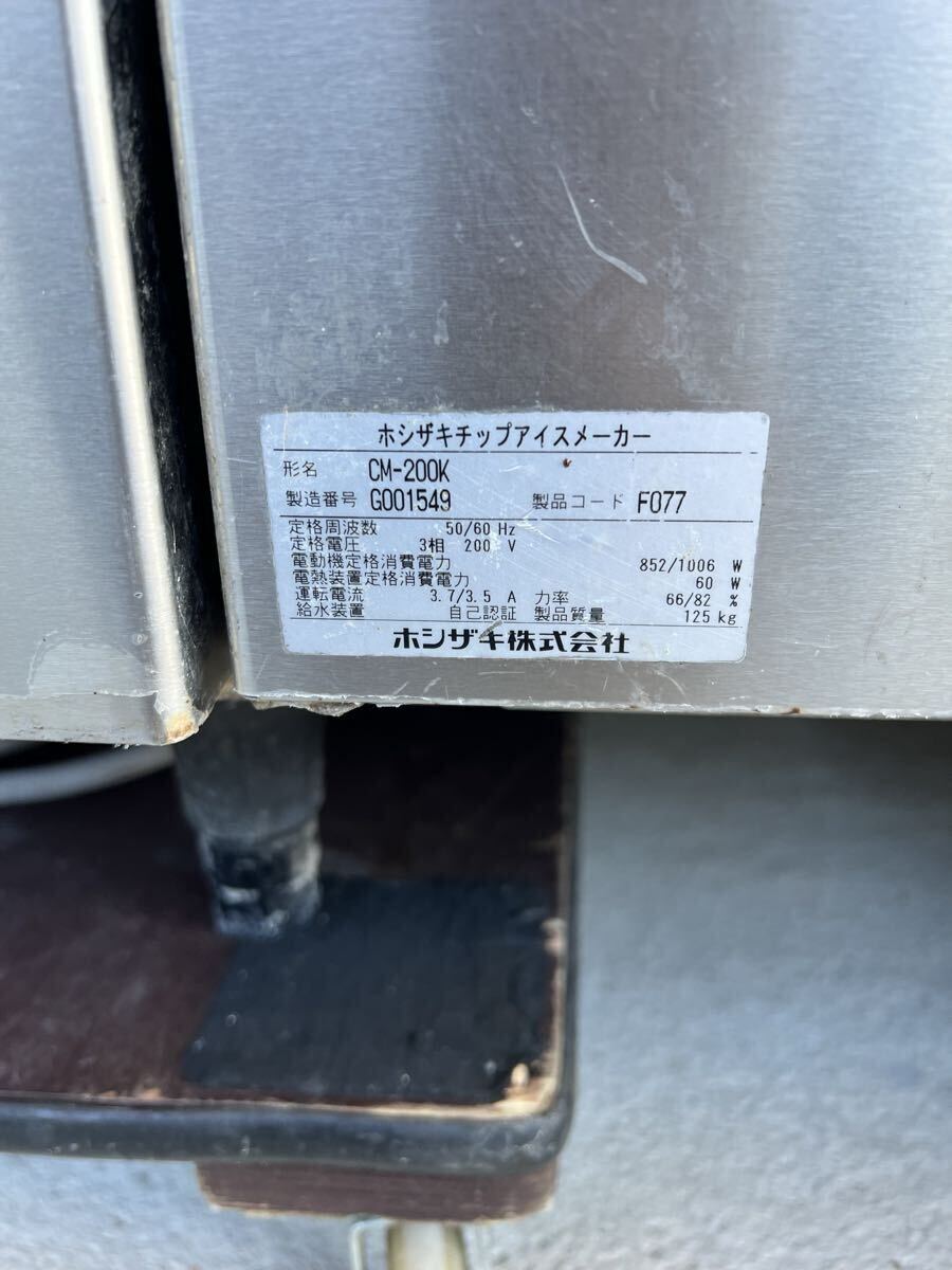 HOSHIZAKI ホシザキ 業務用 全自動製氷機 三相200V CM-200K 厨房機器 チップアイス製氷機