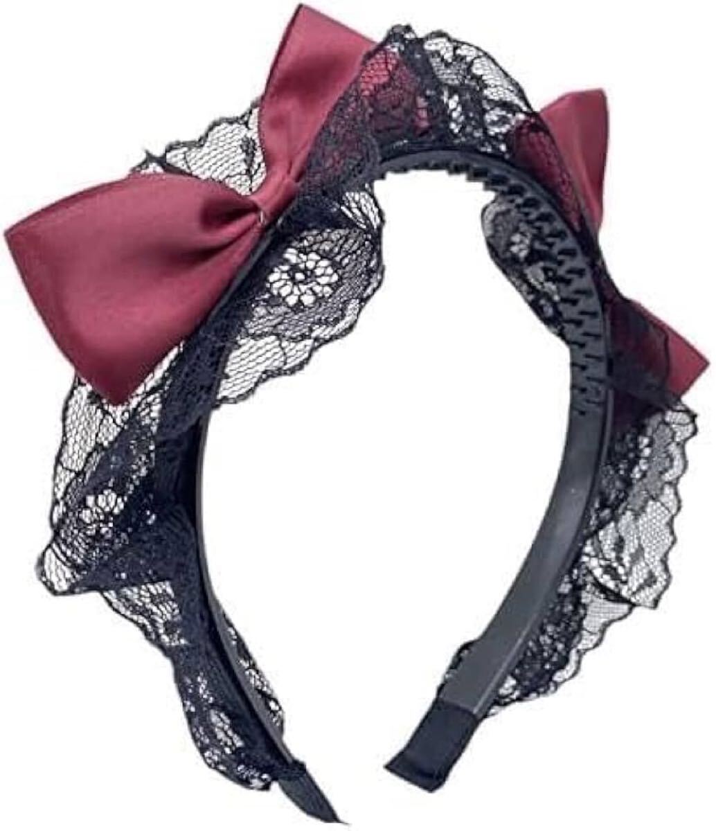 上品なワインレッドのサテンリボンと、繊細なブラックレースが組み合わさった、クラシカルでエレガントなカチューシャです。ロリータファッションやゴシックスタイル、メイドコスチュームなど、特別な装いにぴったりのアイテム。サイドにあしらわれた大きめのリボンが目を惹き、華やかな印象を演出します。内側には滑り止めの突起があり、ズレにくく快適な着け心地です。普段使いはもちろん、撮影やイベントにもおすすめ!