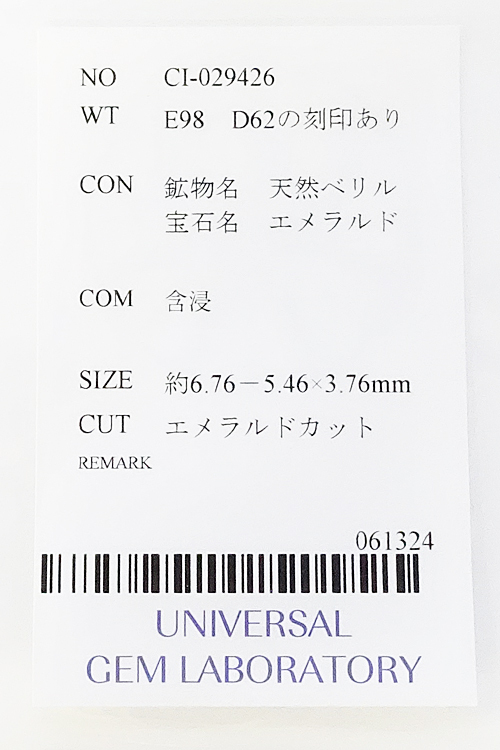 | ■コメント | 三越の、鮮やかなエメラルドグリーンが魅力的な、シンプルで上品なリングです サイドのバケットカットのダイヤモンドがピュアな輝きを放ち、全体的に華美過ぎないスッキリとした印象でお楽しみいただける一品です |