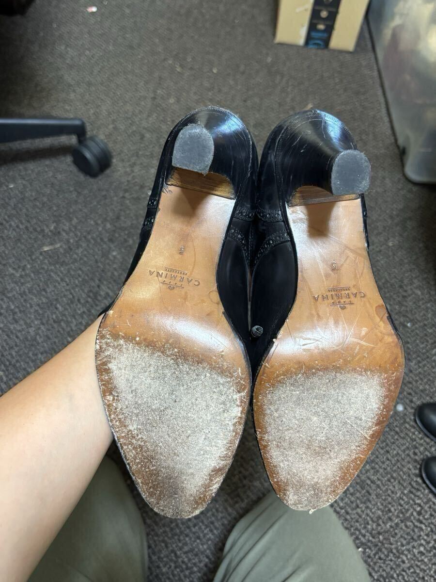 ・カルミナの靴は、グッドイヤーウェルト製法で作られており、ハンドワークを重視している点が特徴です。そのデザイン性の高さ、仕上げの美しさ、履き心地の良さから、イギリス靴に四敵すると評価されています。