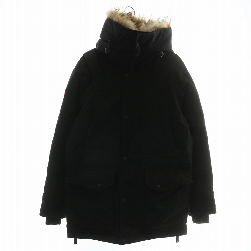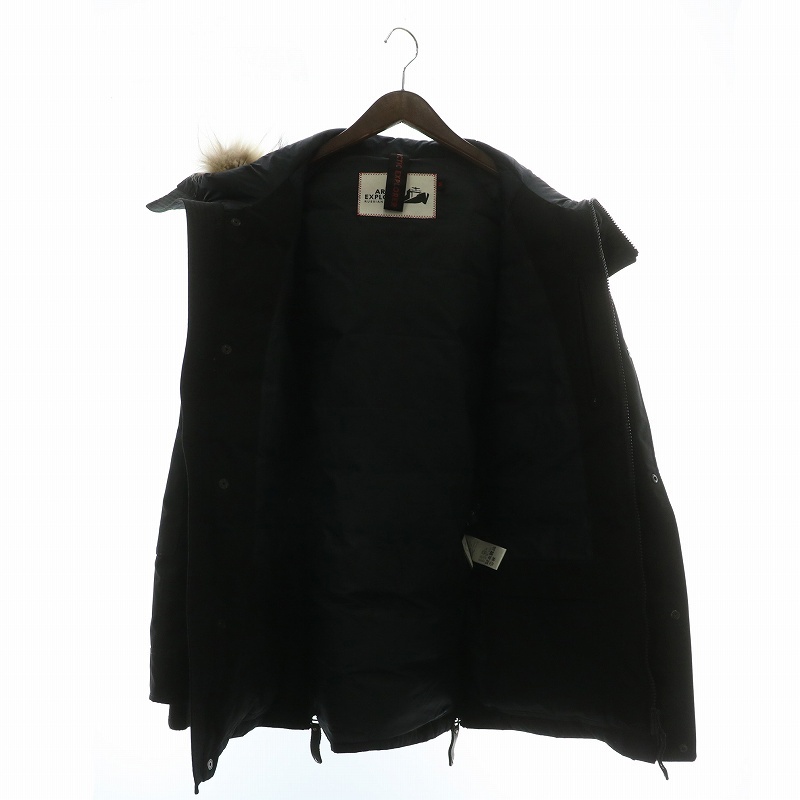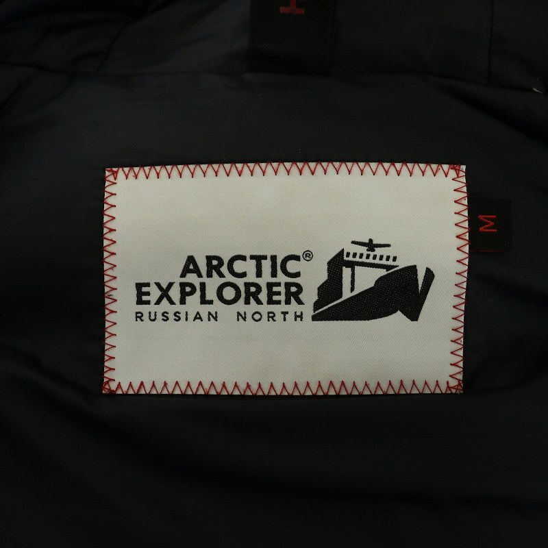 ARCTIC EXPLORER チル CHILL ダウンコート アウター ファー タヌキ フード ジップアップ ロゴ ワッペン M 黒