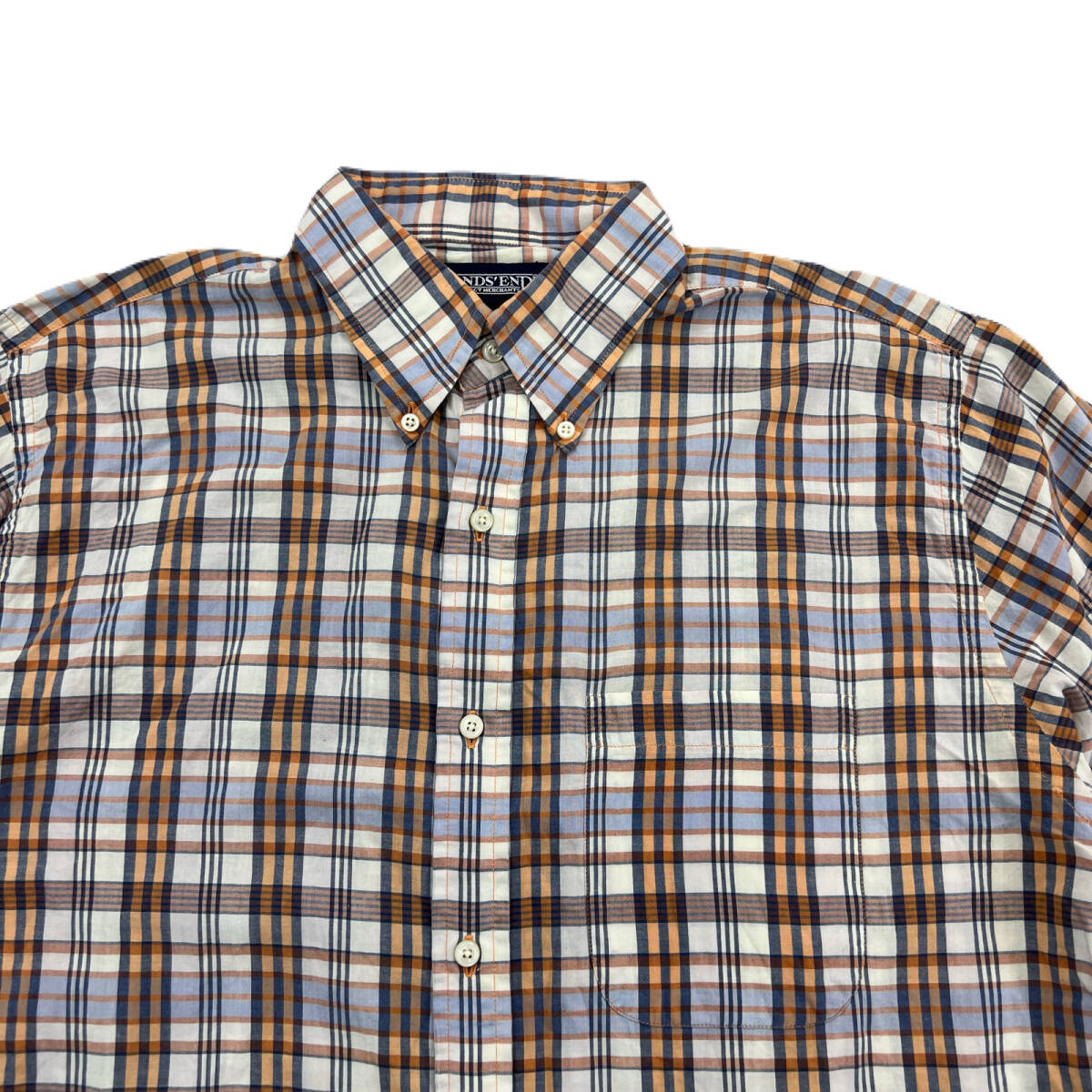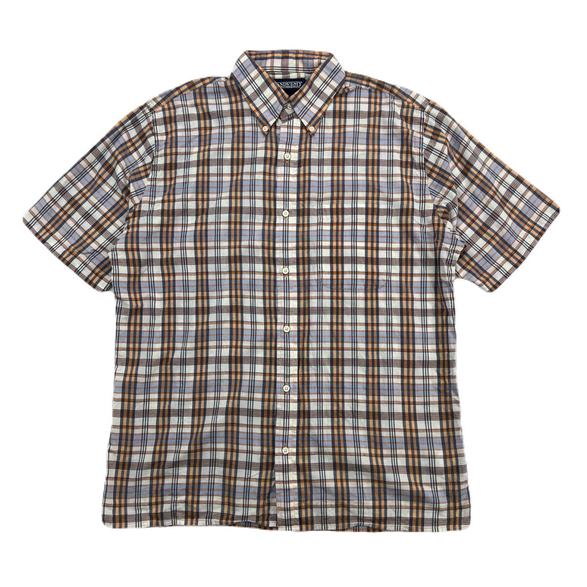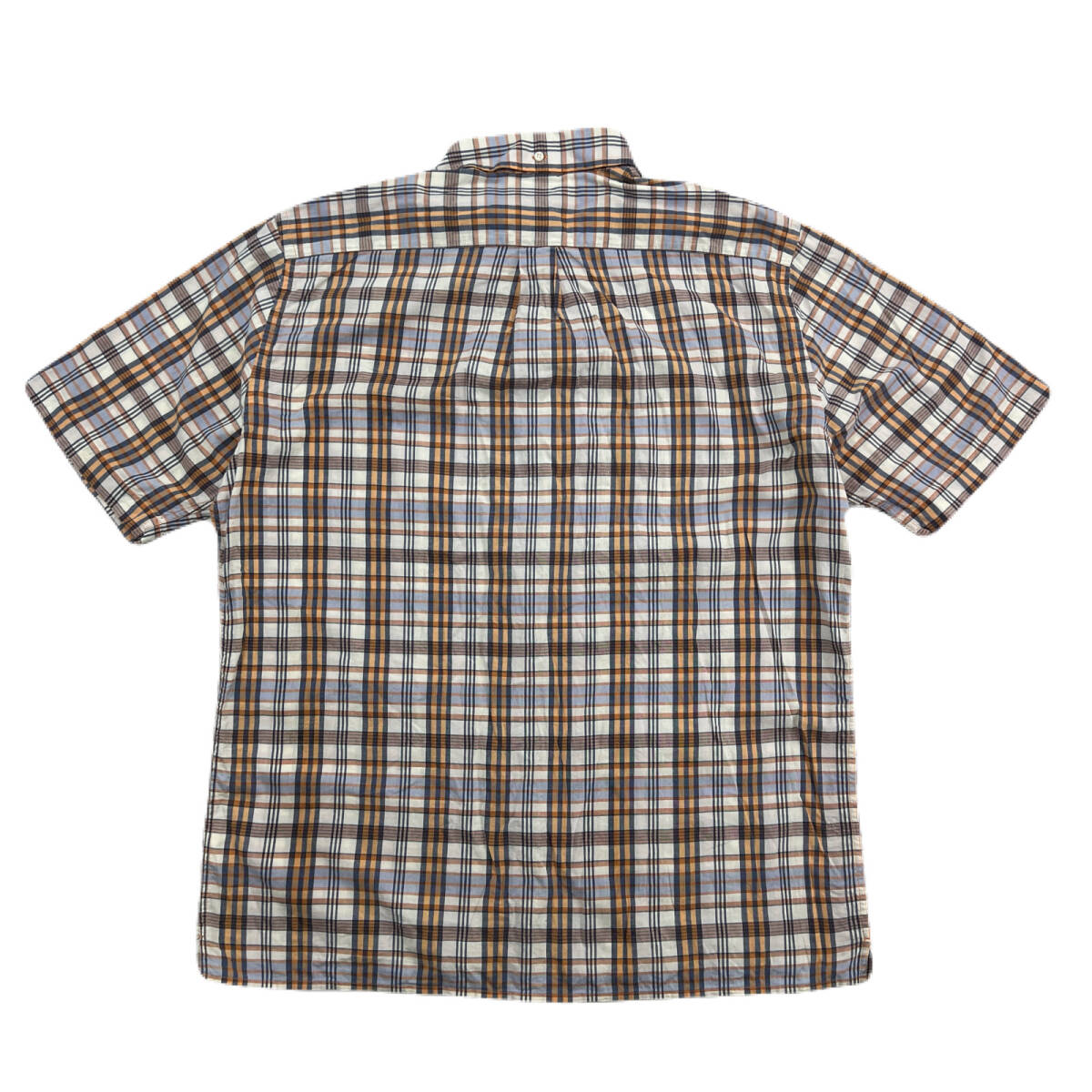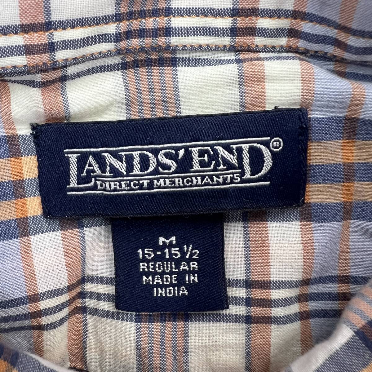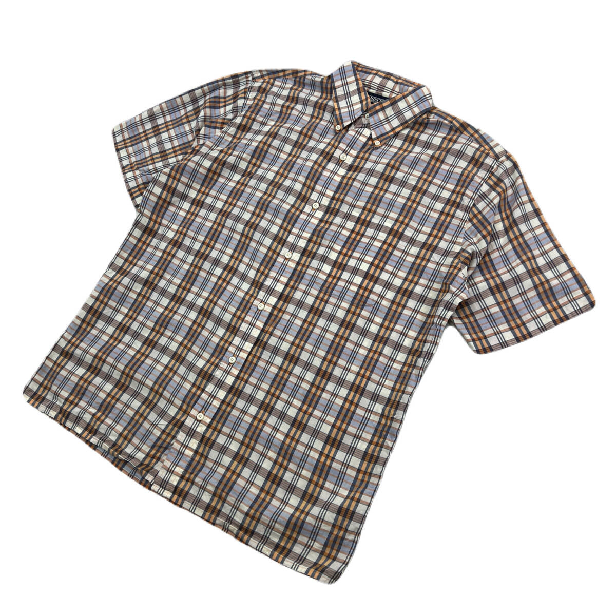 ランズエンド 半袖 シャツ ブラウン ホワイト系 メンズ Mサイズ 【 アウトドア カジュアル♪ 】 LANDS END ●FF267