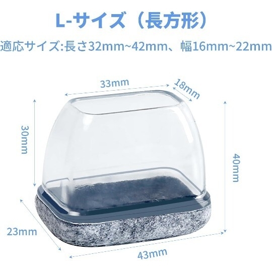 ZDDLOINP 椅子足カバー 長方形 8個入り キズ防止 騒音防止 滑り止め 椅子足キャップ フェルトボトム 椅子脚カバー テーブル脚カバー 机足カバー 家具ソファ床タイル傷防止 シリコーン製 簡単装着 グレーフェルト(L-クリア)