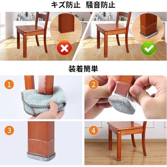 【幅広い用途】 さまざまなタイプの椅子とテーブル脚と机足に完璧に適合し、ダイニングチェア、リビングルーム椅子、キッチンチェアなどに使用できます。また、家庭のリビングルームやダイニングルームだけでなく、会社の会議室、学校の図書室、カフェ、レストラン、待合室、食堂など、さまざまな場面で利用できます。購入時には椅子のサイズに合わせて選択してください。