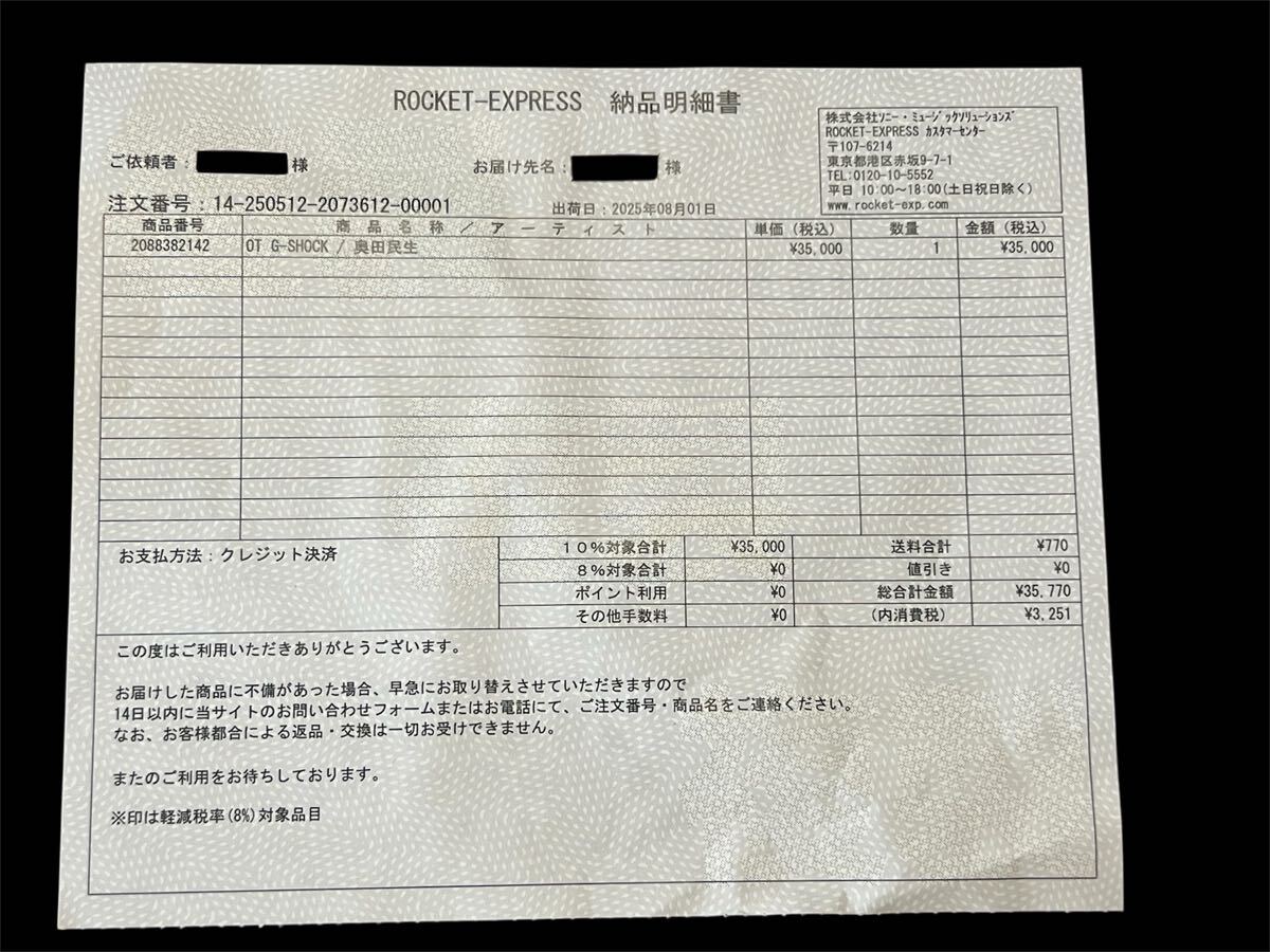 納品書は、写真にある個人情報を削除した状態で折りたたみ同梱させていただきます