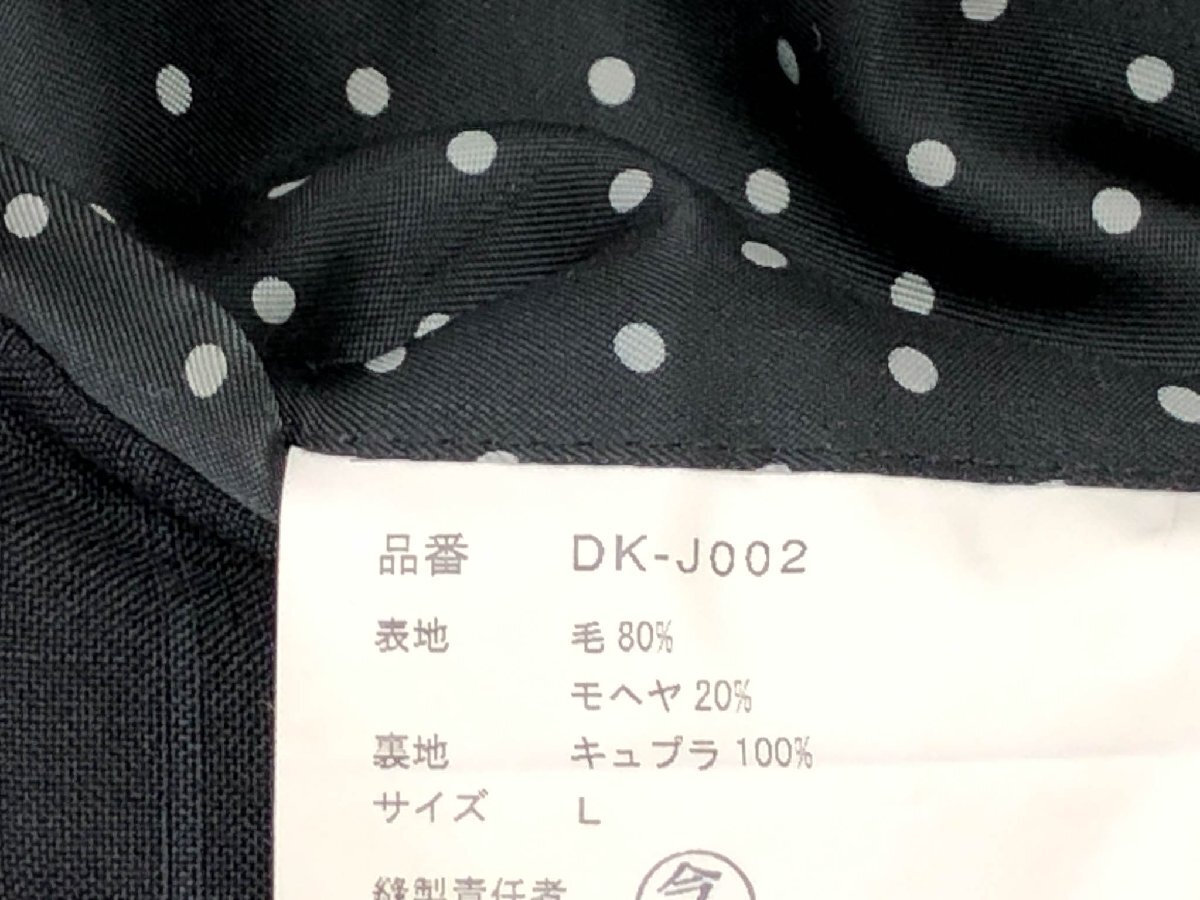 ・ジャケット・・・着丈(襟下から背中心で)約76センチ、身幅約52センチ、肩幅(直線で)約45ンチ、袖丈約63センチ、ウエスト幅(第2ボタン付近で)約49センチ