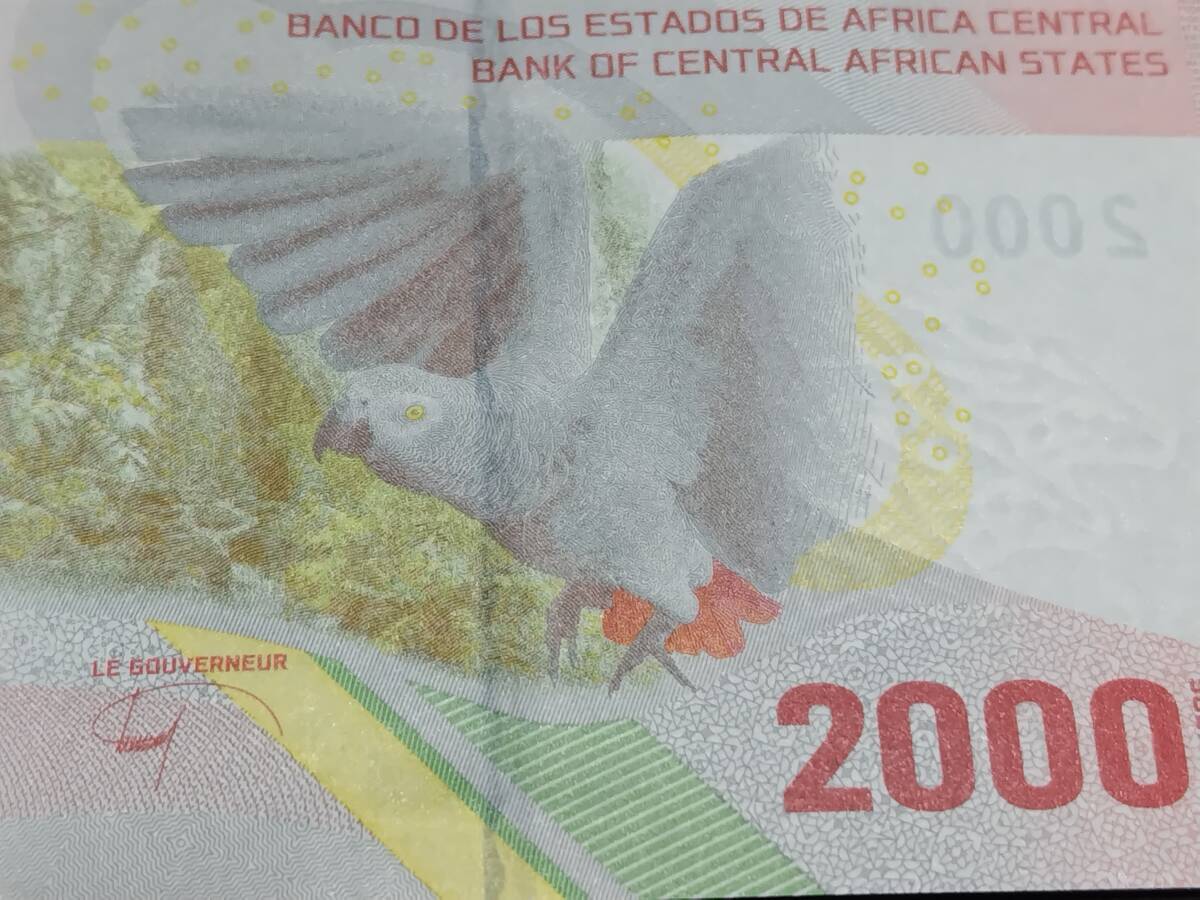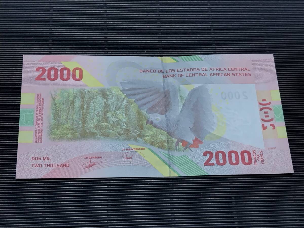 中部アフリカ諸国 2000Francs札 コレクション向きのピン札 2020年 未使用 オウム p-W702 #02041995 D0