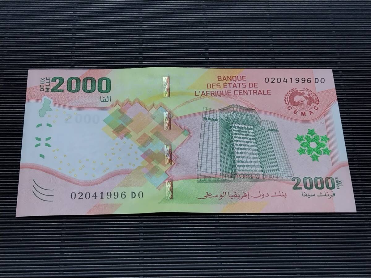中部アフリカ諸国 2000Francs札  コレクション向きのピン札  2020年 未使用  オウム p-W702 #02041995 D0