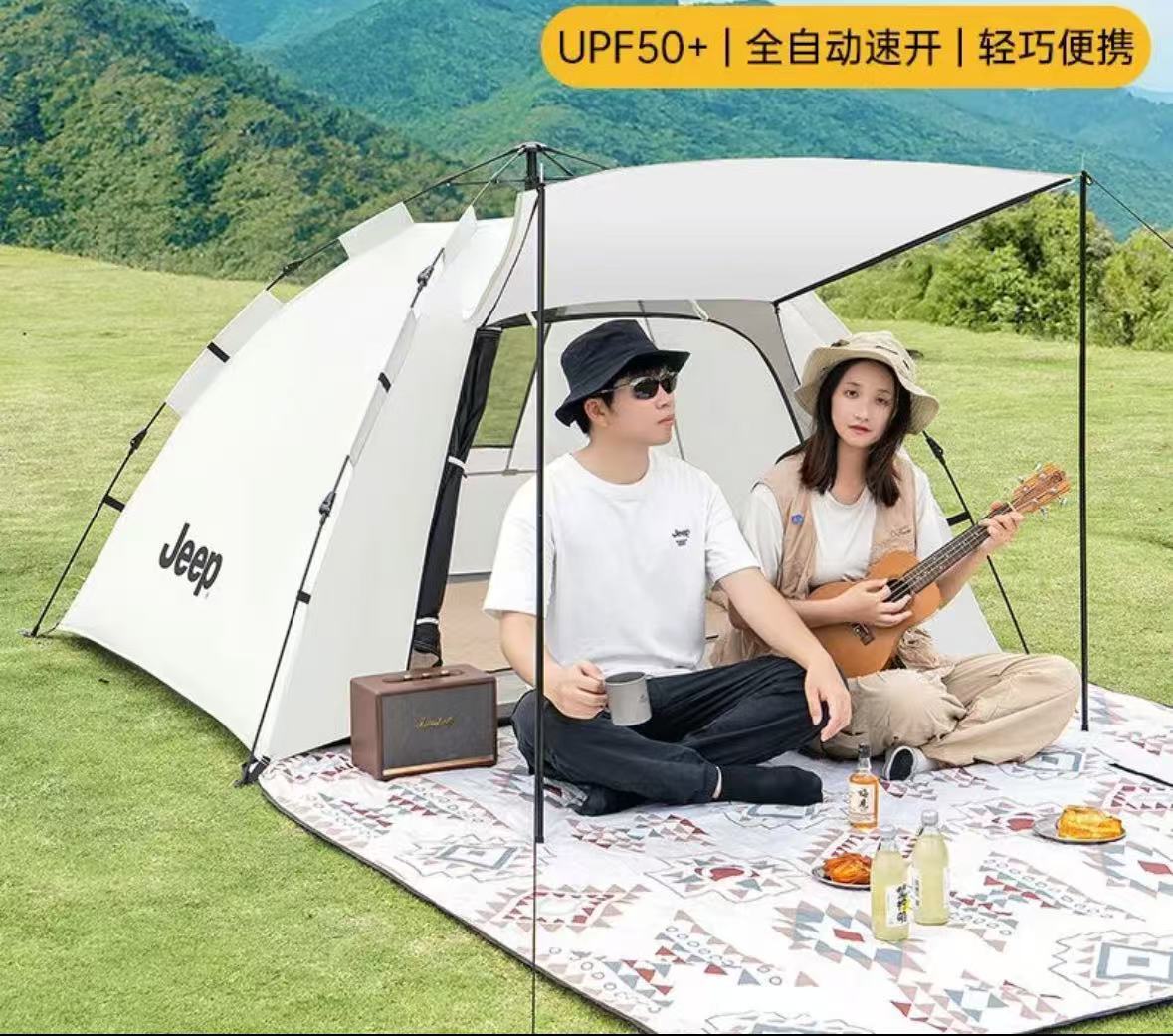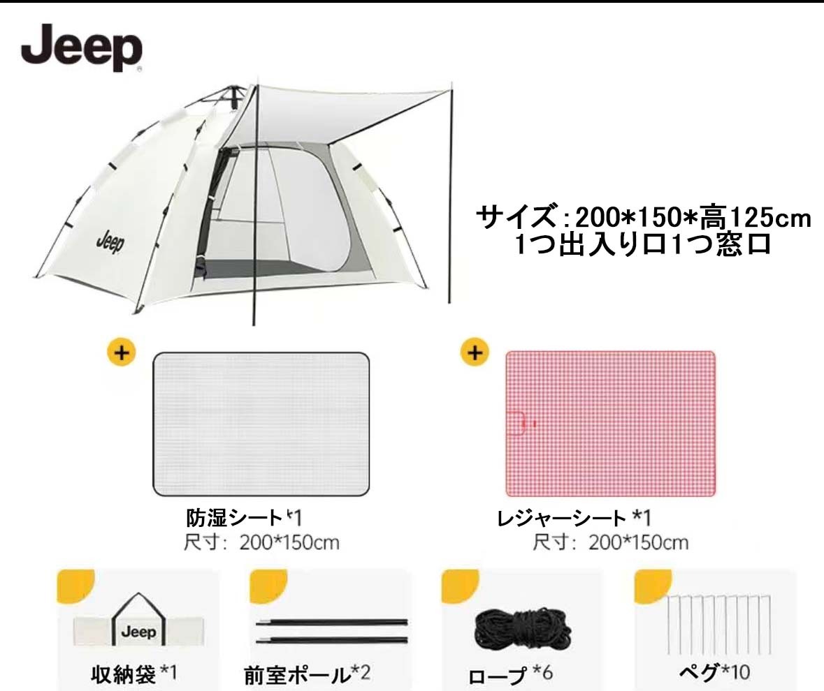 Jeep テント ワンタッチテント 2~3人用 uvカット加工(1つ出入り口1つ窓口)防湿シートとレジャーシート付き JP11FD