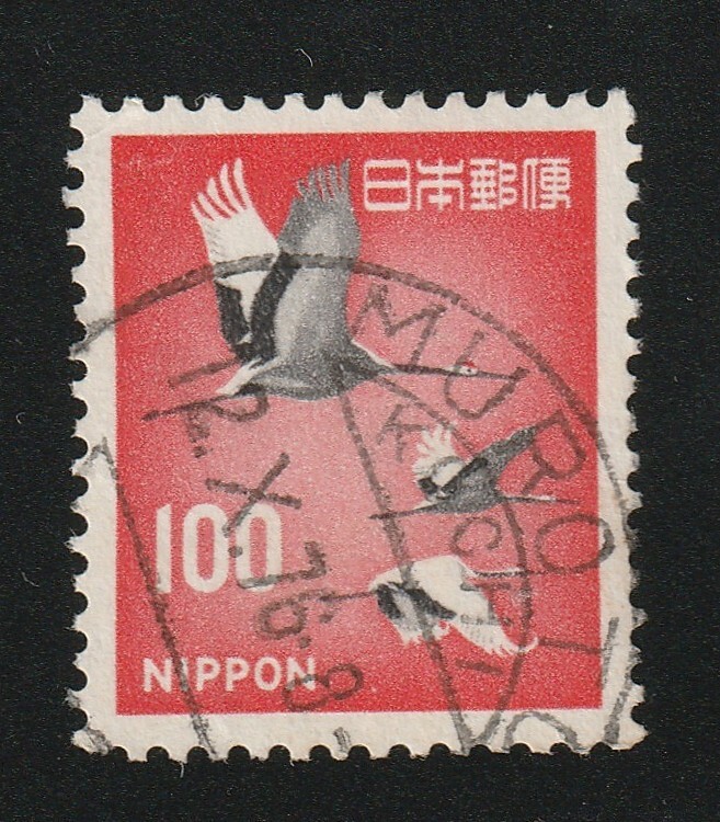 【満月 使用済 可読印】欧文印 新動植物国宝 1967年シリーズ 100円 タンチョウ MUROTO 12.Ⅹ.76