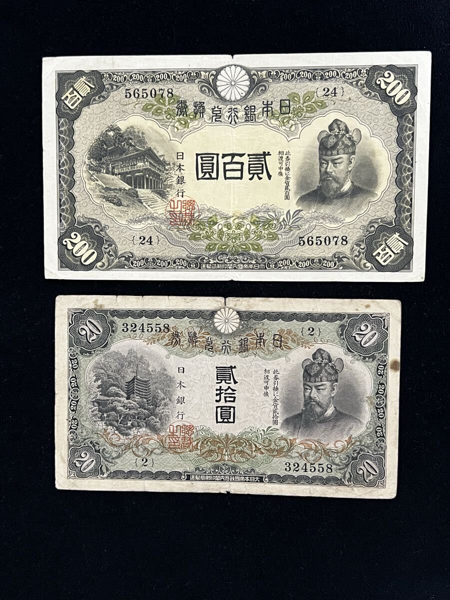 日本銀行兌換券 藤原200円 タテ書き20円 紙幣2枚 日本銀行券 旧紙幣 古札 古紙幣 紙幣 貨幣 希少