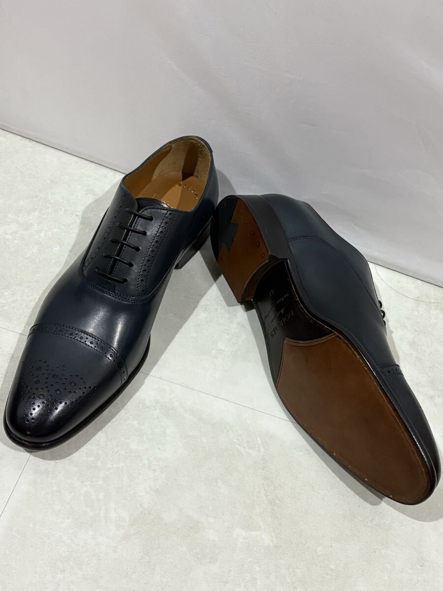 スマートなフォルムでビジネスにピッタリです。ソールは半カラス仕上げマッケイ製法のレザーソールの細身のフォルムでスタイリッシュに履きこなせます。