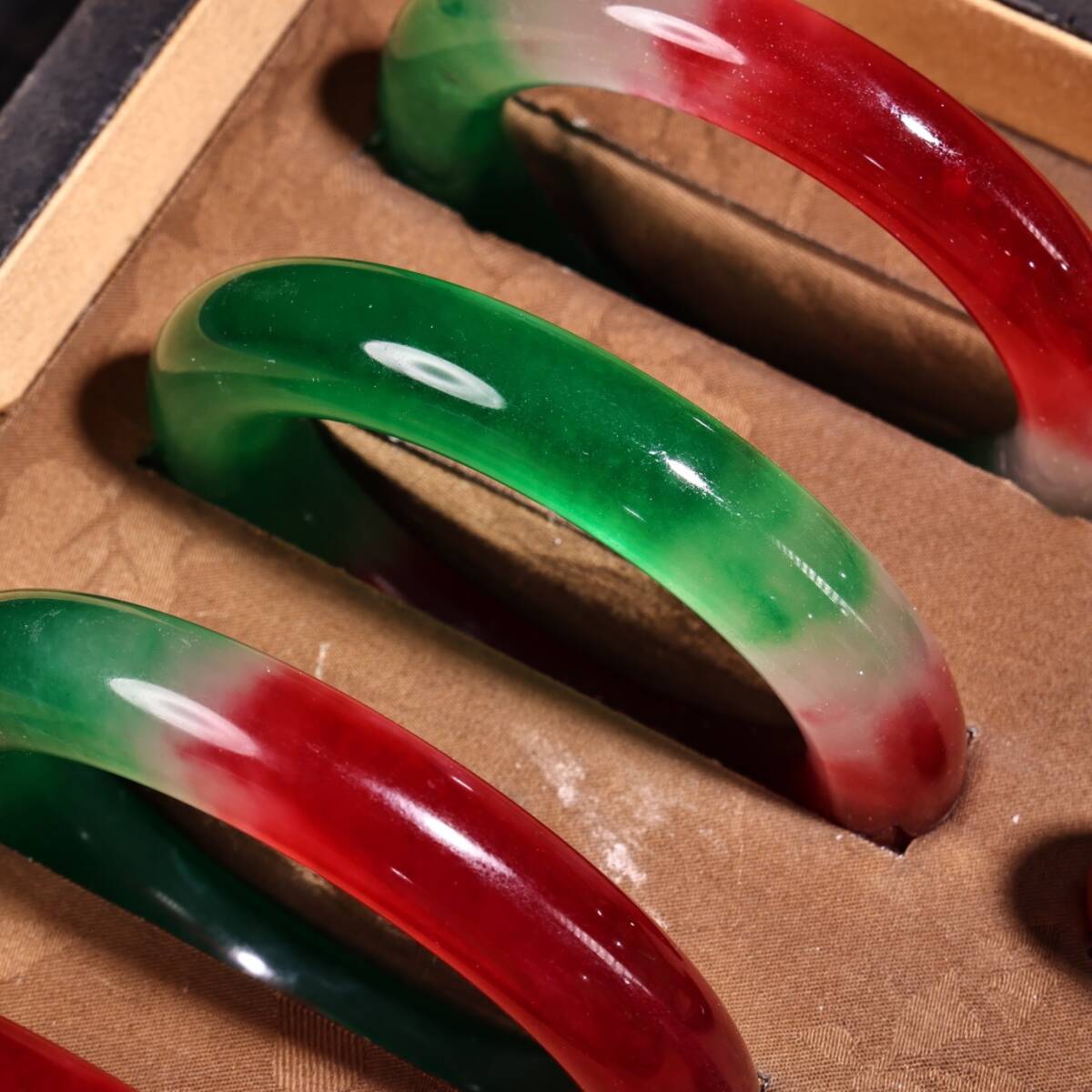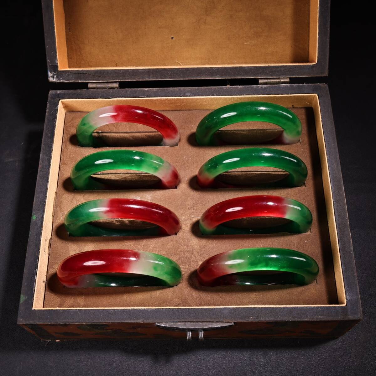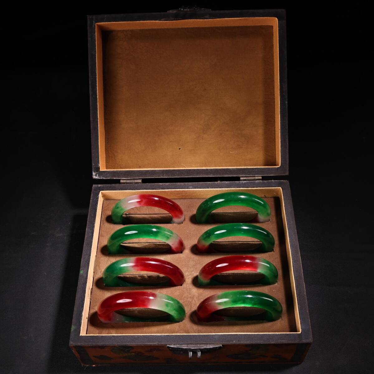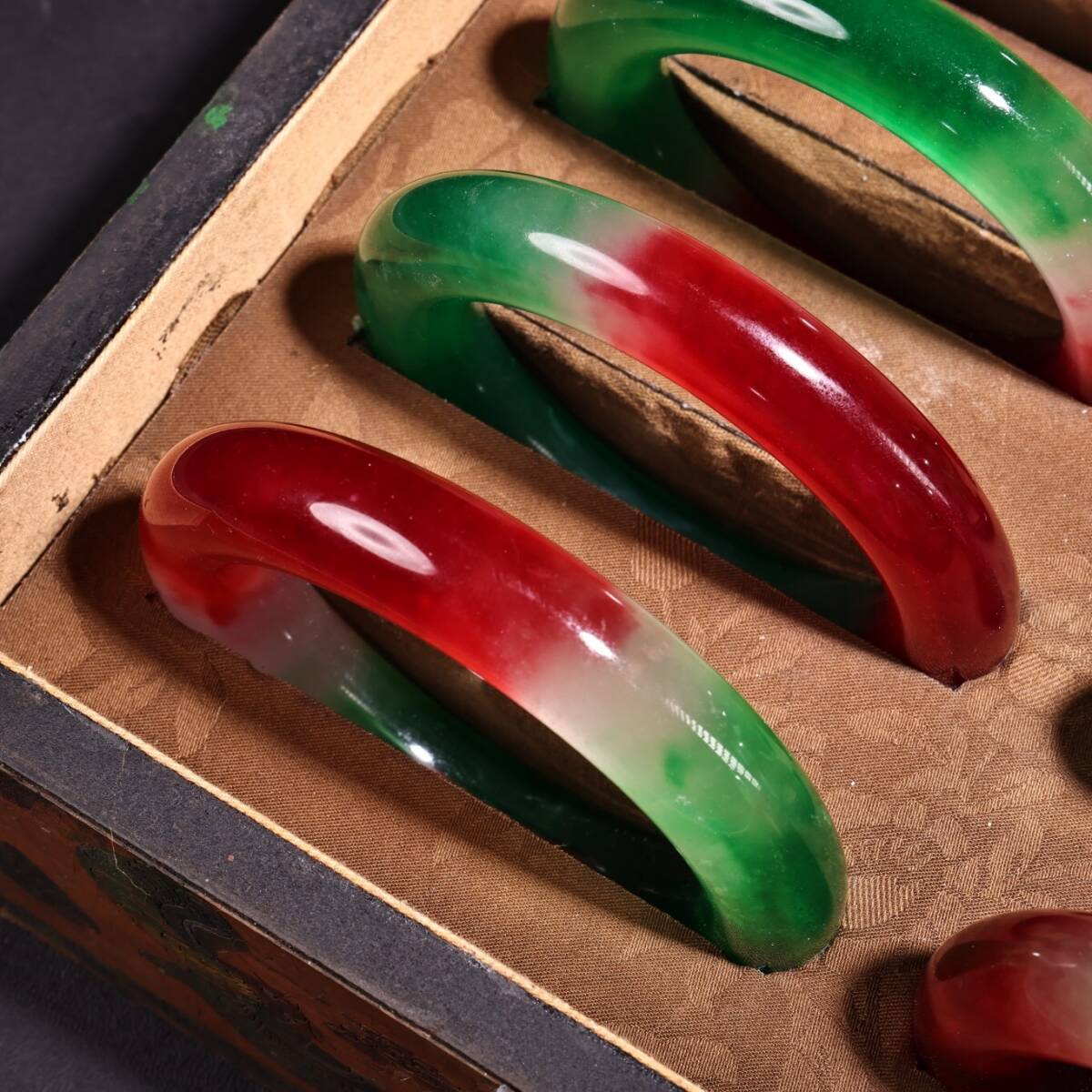 ▽鴻▽ 翡翠製 細密彫 冰種 腕輪 箱付 根付 裝身具 古賞物 古董品 時代物 稀少珍品 中国古玩 中国古美術